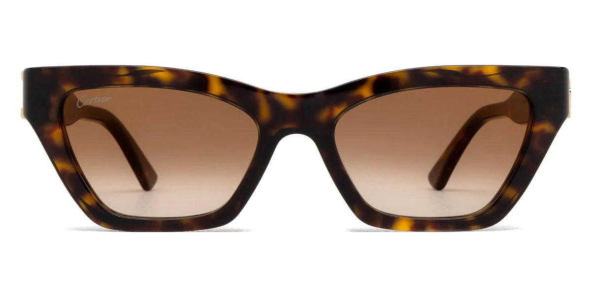 Havana (002) Sunglasses with Brown Multi Treatment lenses (CT0437S 002 53) by Cartier™. Size: 53-18-140, Shape: Cat-Eye, Material: Recycled Acetate.