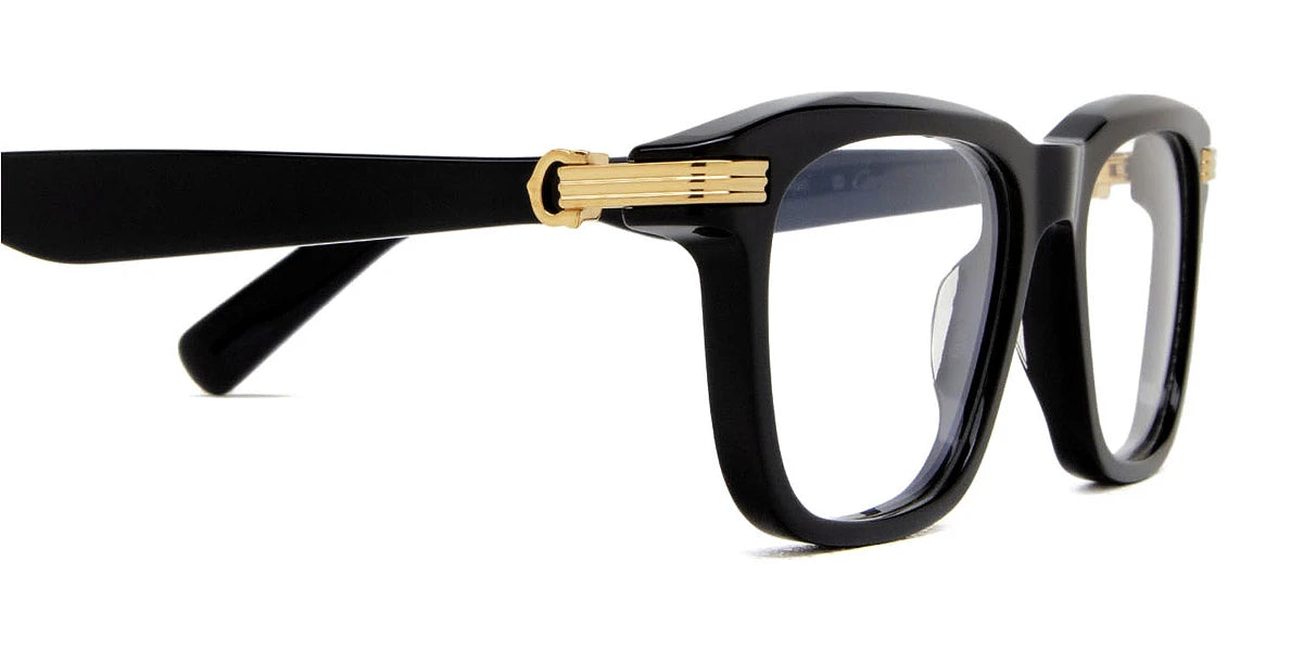 Black (005) Eyeglasses (CT0444O 005 54) by Cartier™. Size: 54-19-145, Shape: Square, Material: Recycled Acetate.