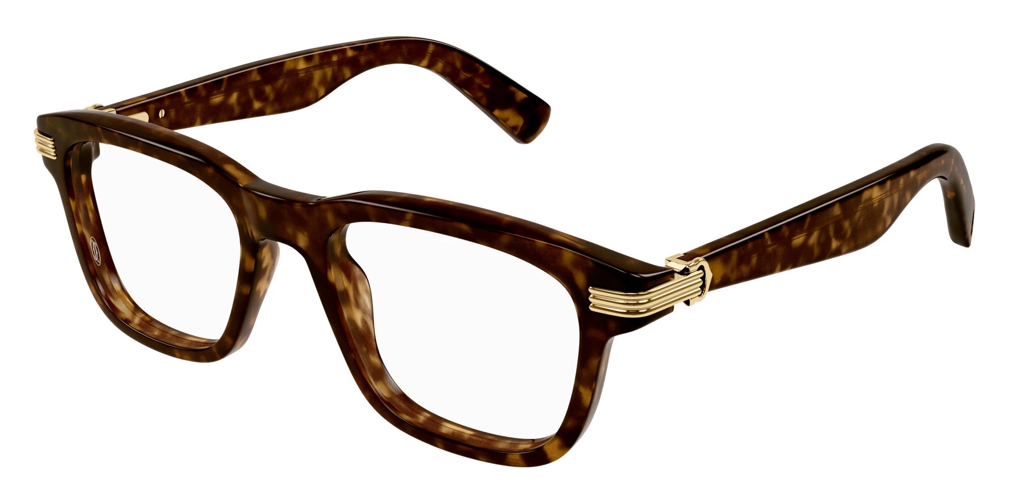 CT0444O Eyeglasses by Cartier™. The square shape design feature a full rim recycled acetate frame. This model is available in three different color combinations and sizes. Cartier, a renowned luxury brand with a rich history spanning over a century, is synonymous with elegance, craftsmanship, and timeless style. While Cartier is most celebrated for its exquisite jewelry and watches, the brand's eyewear collection stands as a testament to its commitment to excellence and innovation. Its eyewear captures the essence of Cartier's aesthetic codes, combining traditional craftsmanship with modern designs to create eyewear pieces that are both stylish and functional. Each pair of eyeglasses is meticulously crafted using the finest materials and techniques, resulting in a high-quality product that is built to last. One of the defining features of Cartier eyewear is its iconic and recognizable designs. The brand often incorporates signature elements like the panther motif, the Double C logo, and the Cartier screws, which add a touch of sophistication and luxury to the frames. These distinctive details are a testament to the brand's dedication to creating eyewear that is not only fashionable but also instantly recognizable as a Cartier creation.