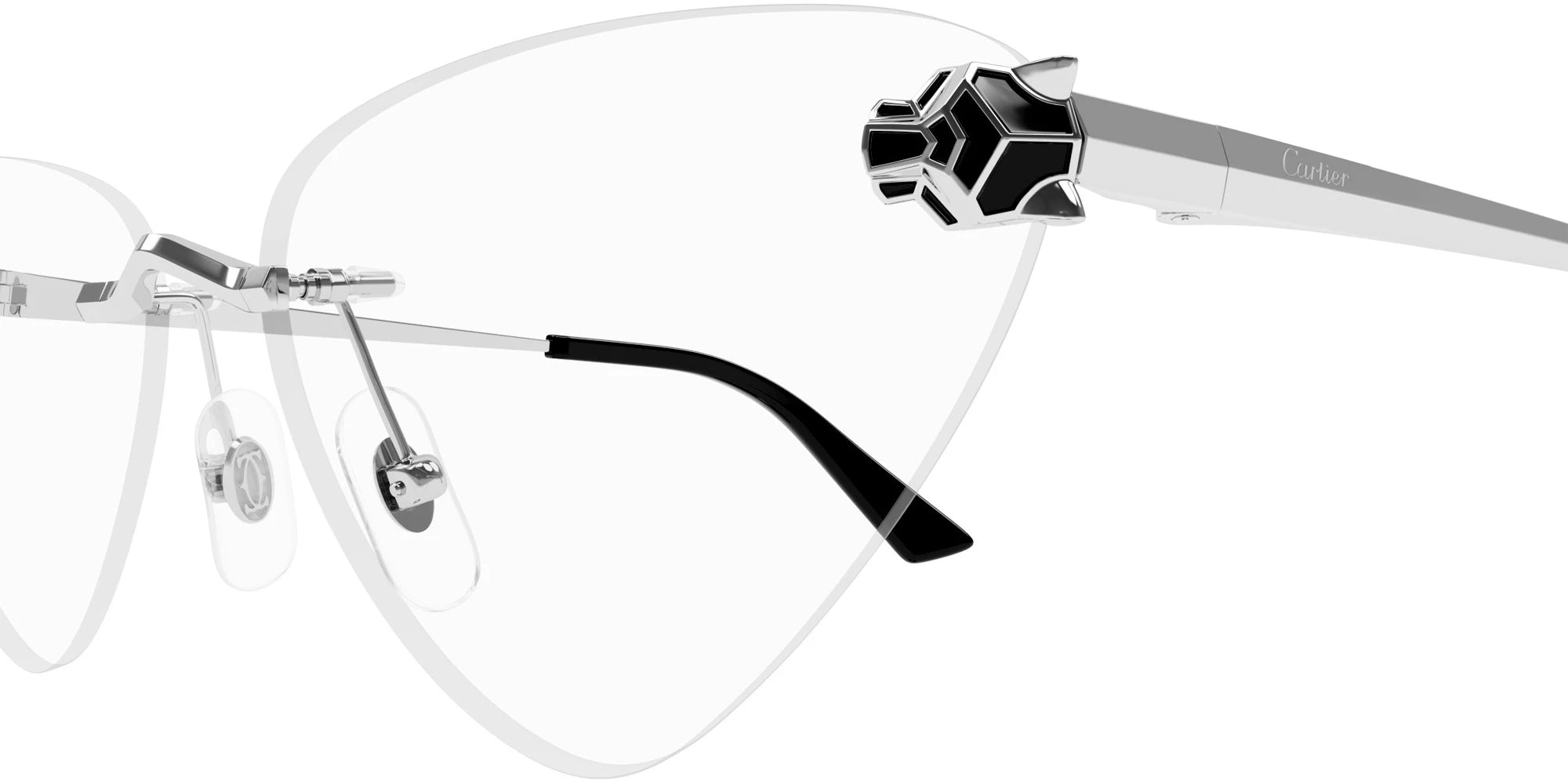 Silver (002) Eyeglasses (CT0448O 002 60) by Cartier™. Size: 60-15-140, Shape: Cat-Eye, Material: Metal.