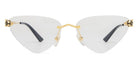 CT0448O Eyeglasses by Cartier™. The cat-eye shape design feature a rimless metal frame. This model is available in two different color combinations and sizes. Cartier, a renowned luxury brand with a rich history spanning over a century, is synonymous with elegance, craftsmanship, and timeless style. While Cartier is most celebrated for its exquisite jewelry and watches, the brand's eyewear collection stands as a testament to its commitment to excellence and innovation. Its eyewear captures the essence of Cartier's aesthetic codes, combining traditional craftsmanship with modern designs to create eyewear pieces that are both stylish and functional. Each pair of eyeglasses is meticulously crafted using the finest materials and techniques, resulting in a high-quality product that is built to last. One of the defining features of Cartier eyewear is its iconic and recognizable designs. The brand often incorporates signature elements like the panther motif, the Double C logo, and the Cartier screws, which add a touch of sophistication and luxury to the frames. These distinctive details are a testament to the brand's dedication to creating eyewear that is not only fashionable but also instantly recognizable as a Cartier creation.