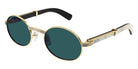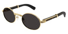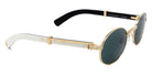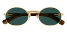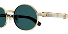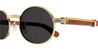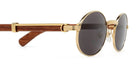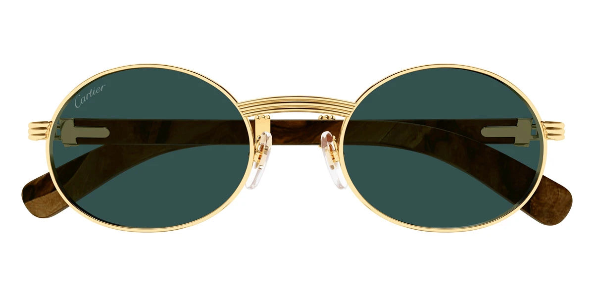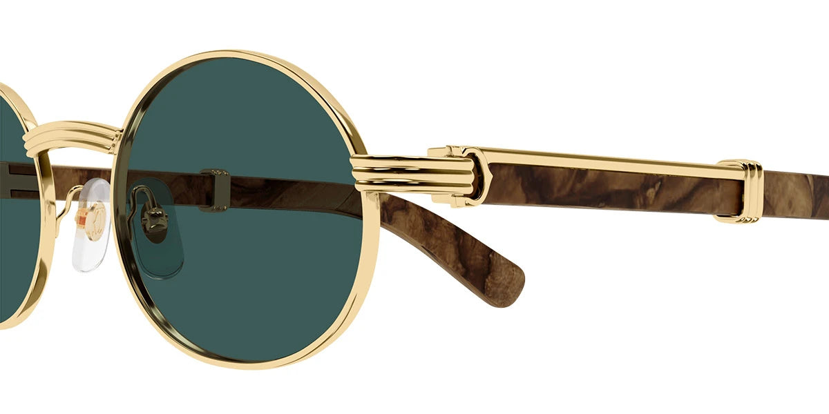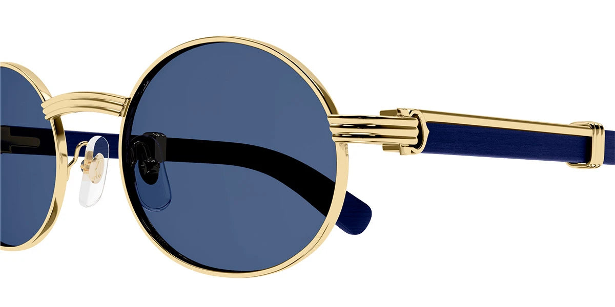 Gold/Blue (004) Sunglasses with Blue AR lenses (CT0464S 004 53) by Cartier™. Size: 53-22-145, Shape: Round, Material: Metal and Wood.