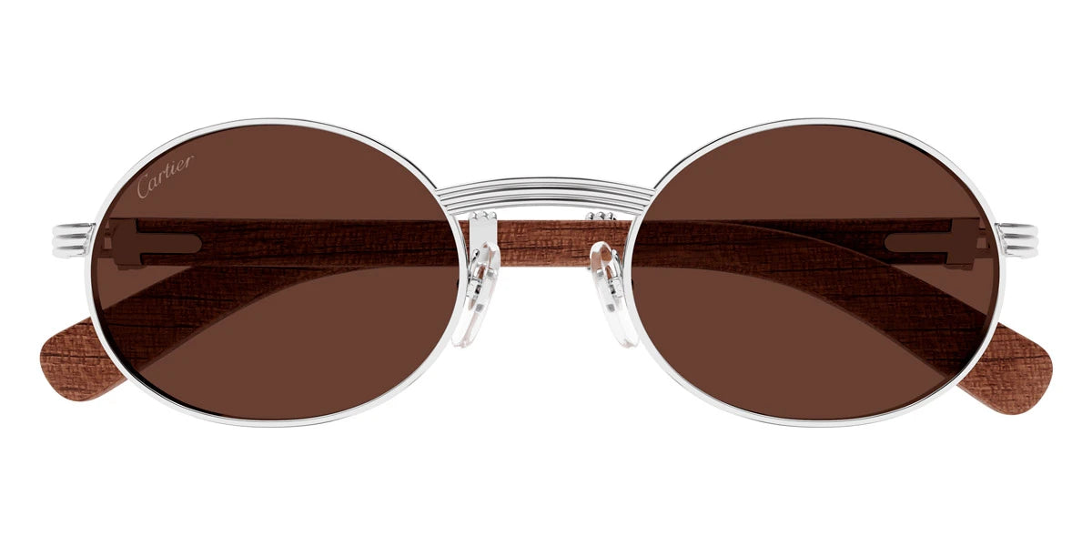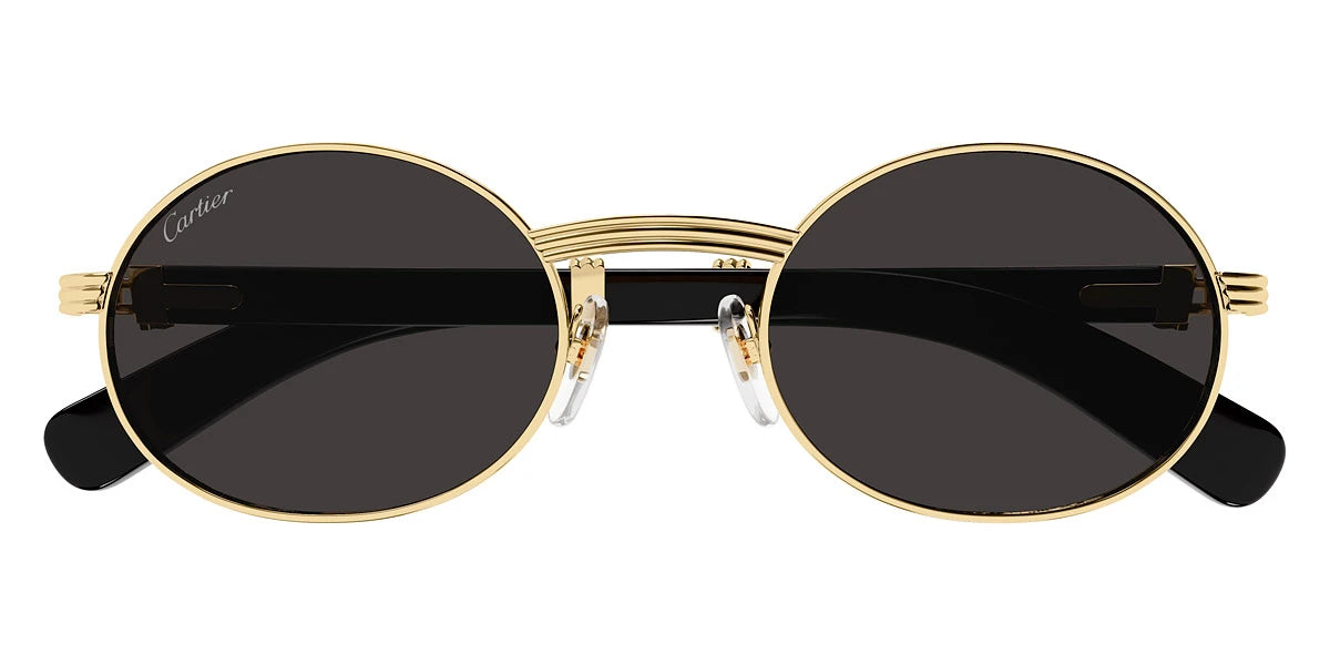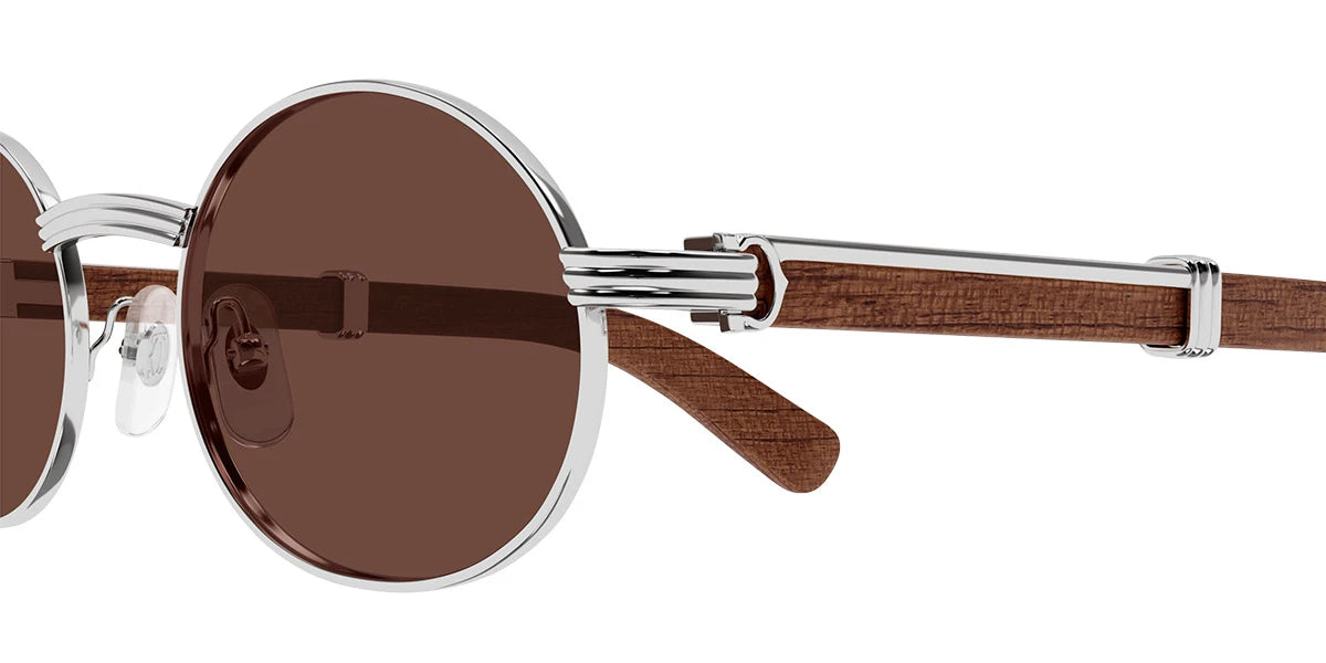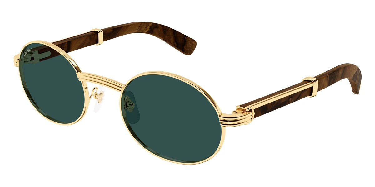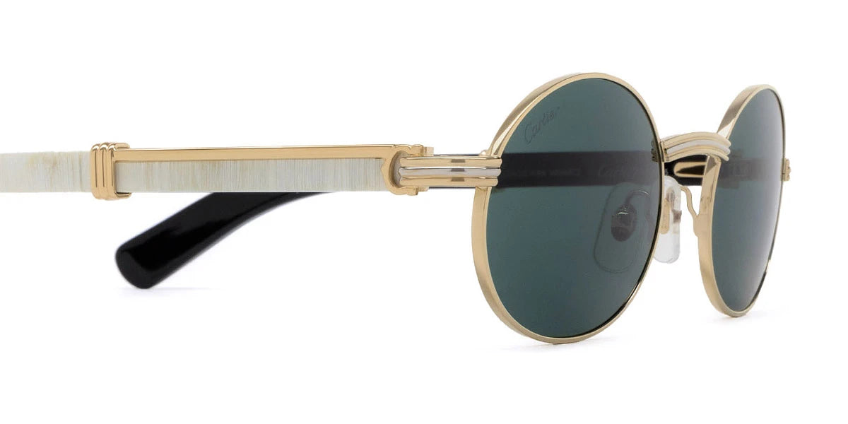 CT0464S Sunglasses by Cartier™. The round shape design feature a full rim metal, wood and horn frame. This model is available in eight different color combinations and sizes. Cartier, a renowned luxury brand with a rich history spanning over a century, is synonymous with elegance, craftsmanship, and timeless style. While Cartier is most celebrated for its exquisite jewelry and watches, the brand's eyewear collection stands as a testament to its commitment to excellence and innovation. Its eyewear captures the essence of Cartier's aesthetic codes, combining traditional craftsmanship with modern designs to create eyewear pieces that are both stylish and functional. Each pair of sunglasses is meticulously crafted using the finest materials and techniques, resulting in a high-quality product that is built to last. One of the defining features of Cartier eyewear is its iconic and recognizable designs. The brand often incorporates signature elements like the panther motif, the Double C logo, and the Cartier screws, which add a touch of sophistication and luxury to the frames. These distinctive details are a testament to the brand's dedication to creating eyewear that is not only fashionable but also instantly recognizable as a Cartier creation.