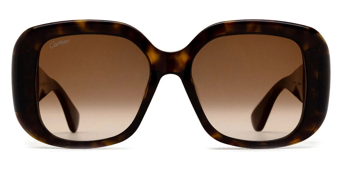 Havana (002) Sunglasses with Brown Multi Treatment lenses (CT0471SA 002 54) by Cartier™. Size: 54-17-145, Shape: Square, Material: Recycled Acetate.