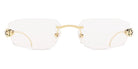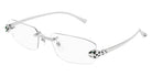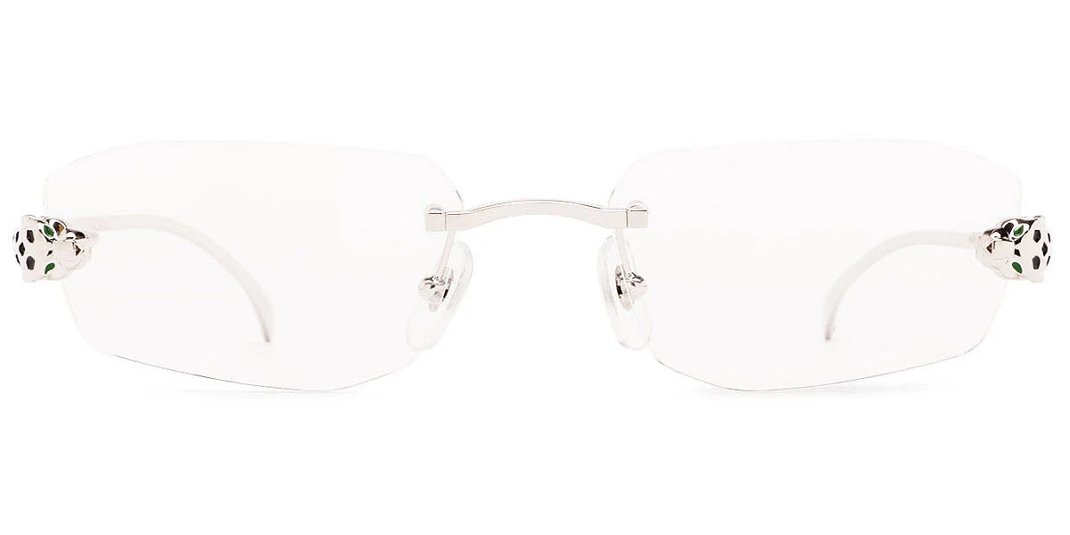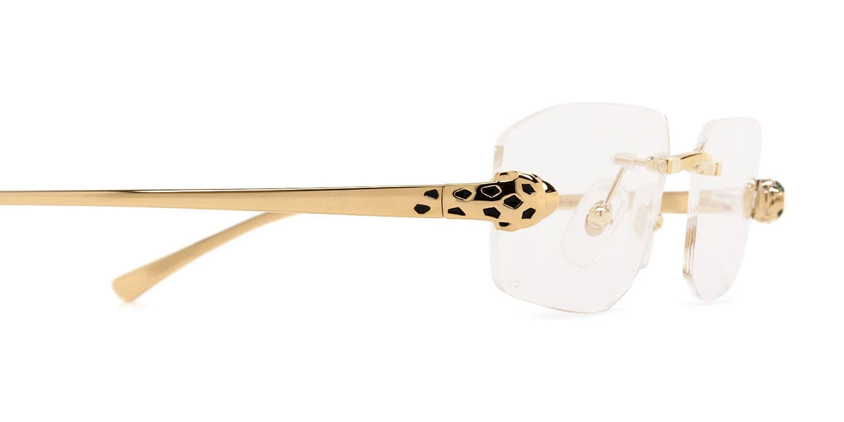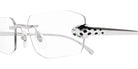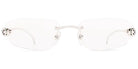 CT0494O Eyeglasses by Cartier™. The rectangle shape design feature a rimless metal frame. This model is available in two different color combinations and sizes. Cartier, a renowned luxury brand with a rich history spanning over a century, is synonymous with elegance, craftsmanship, and timeless style. While Cartier is most celebrated for its exquisite jewelry and watches, the brand's eyewear collection stands as a testament to its commitment to excellence and innovation. Its eyewear captures the essence of Cartier's aesthetic codes, combining traditional craftsmanship with modern designs to create eyewear pieces that are both stylish and functional. Each pair of eyeglasses is meticulously crafted using the finest materials and techniques, resulting in a high-quality product that is built to last. One of the defining features of Cartier eyewear is its iconic and recognizable designs. The brand often incorporates signature elements like the panther motif, the Double C logo, and the Cartier screws, which add a touch of sophistication and luxury to the frames. These distinctive details are a testament to the brand's dedication to creating eyewear that is not only fashionable but also instantly recognizable as a Cartier creation.
