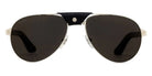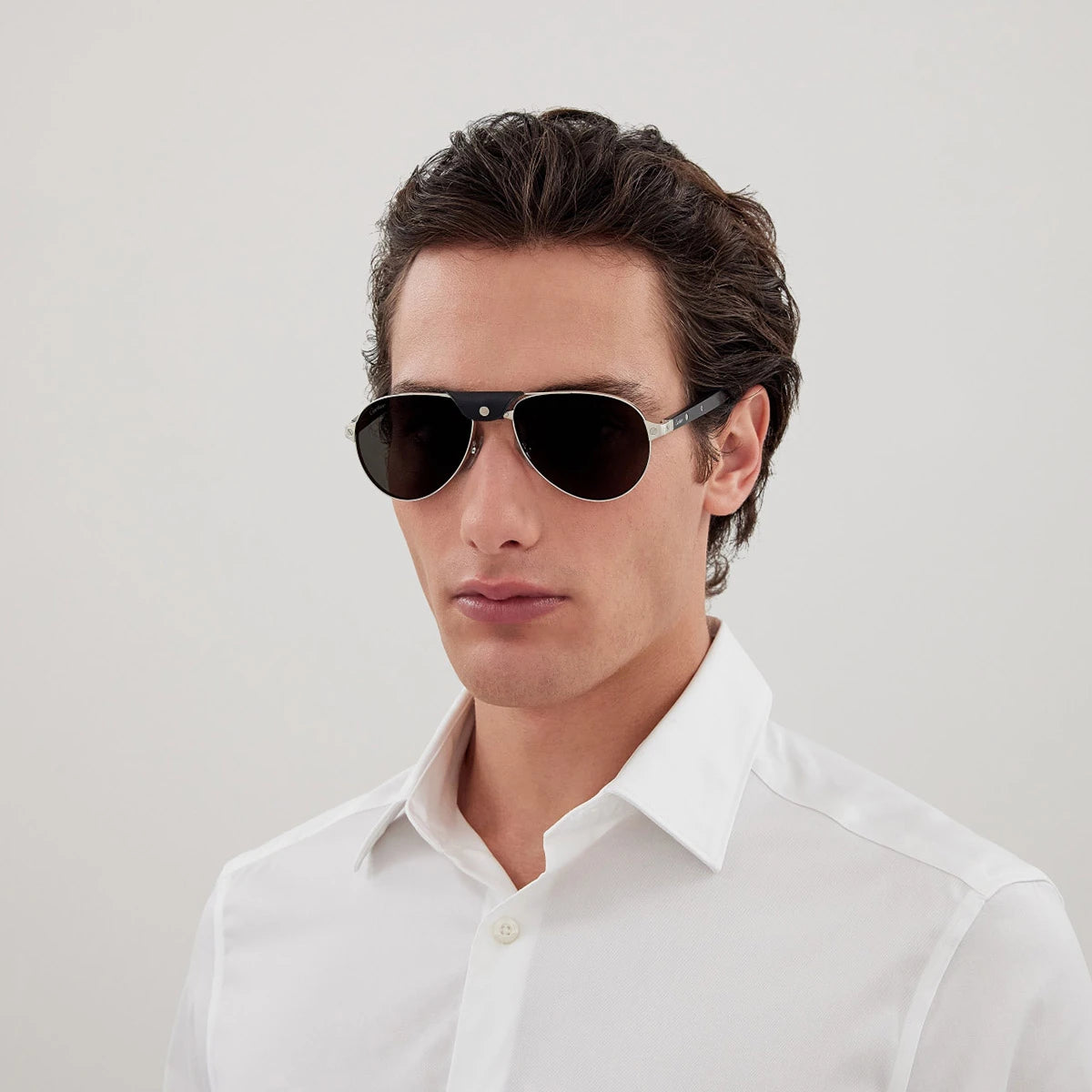 Silver/Black (003) Sunglasses with Smoke Multi Treatment Polarized lenses (CT0495S 003 59) by Cartier™. Size: 59-18-145, Shape: Aviator, Material: Metal and Wood.