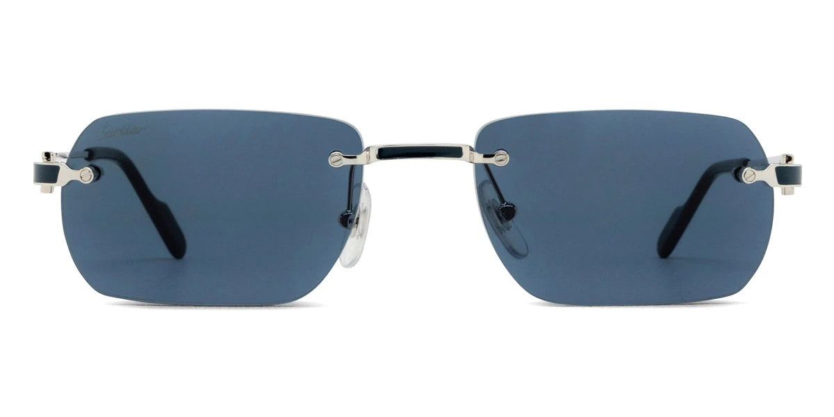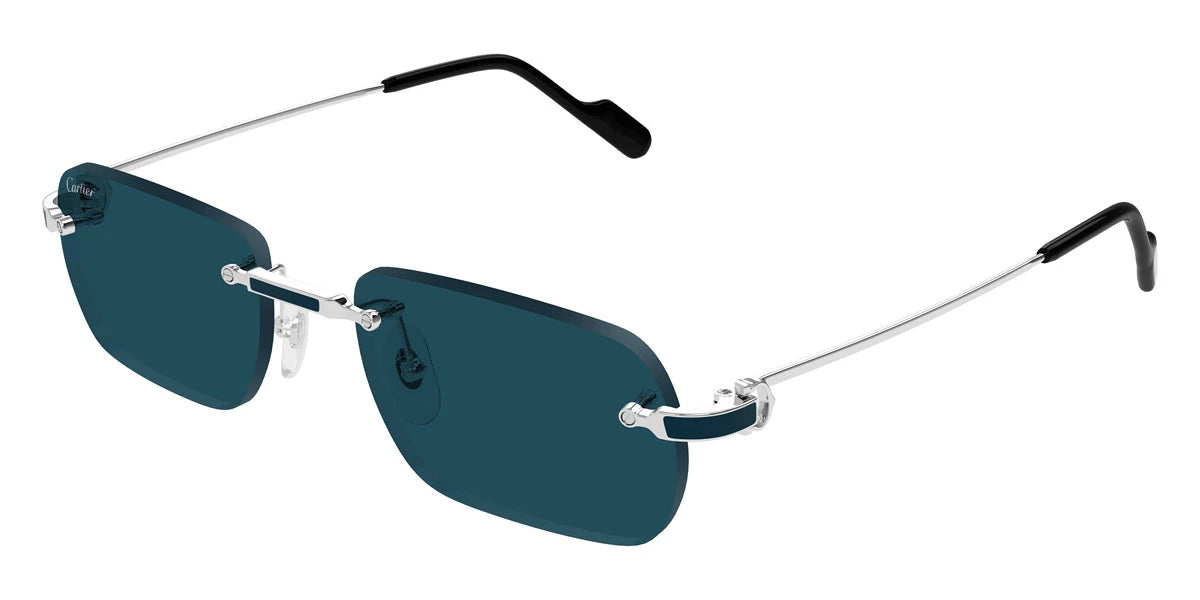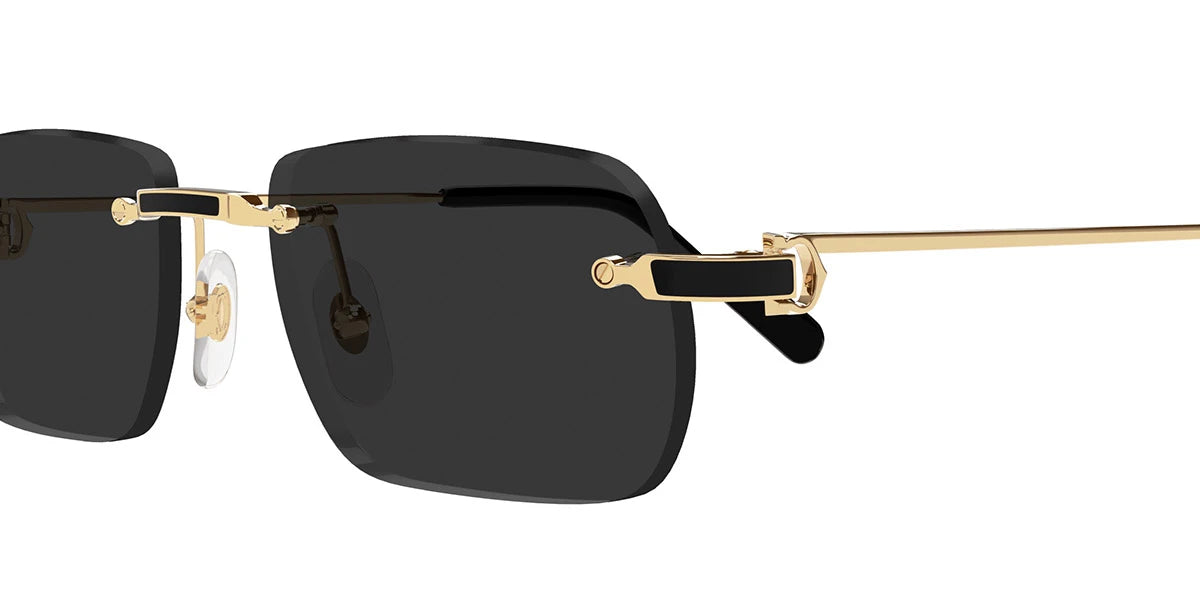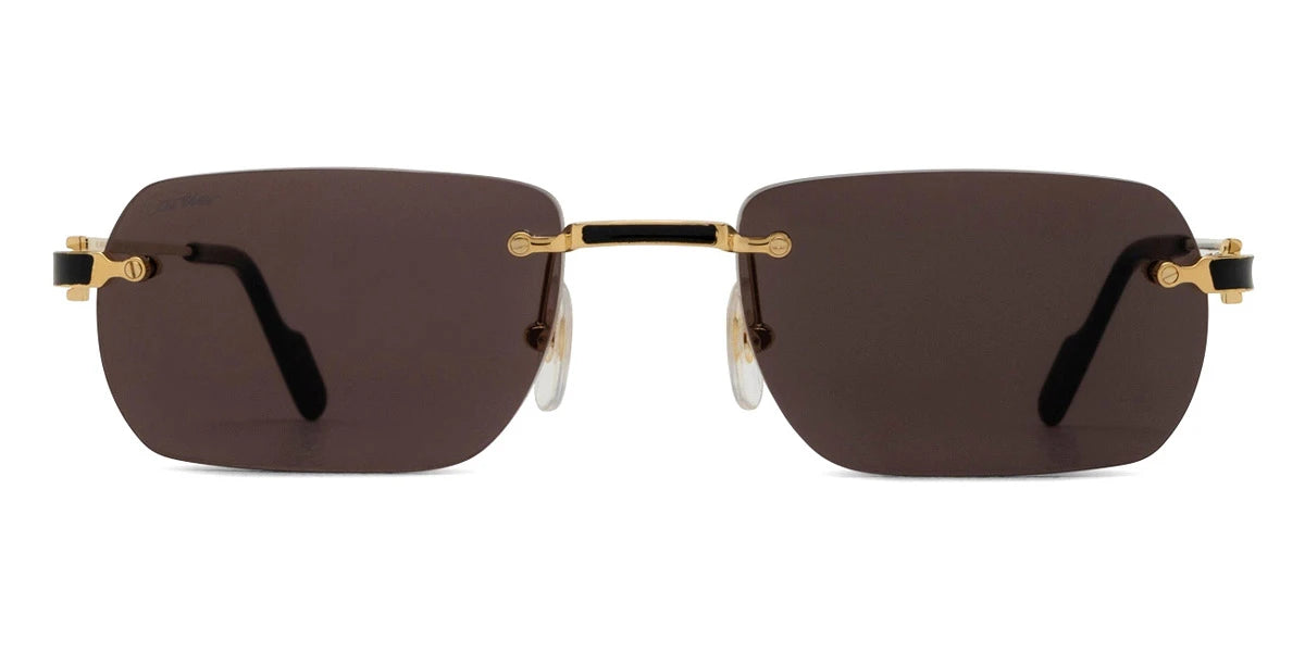 CT0498S Sunglasses by Cartier™. The rectangle shape design feature a rimless metal and recycled acetate frame. This model is available in one color combination. Cartier, a renowned luxury brand with a rich history spanning over a century, is synonymous with elegance, craftsmanship, and timeless style. While Cartier is most celebrated for its exquisite jewelry and watches, the brand's eyewear collection stands as a testament to its commitment to excellence and innovation. Its eyewear captures the essence of Cartier's aesthetic codes, combining traditional craftsmanship with modern designs to create eyewear pieces that are both stylish and functional. Each pair of sunglasses is meticulously crafted using the finest materials and techniques, resulting in a high-quality product that is built to last. One of the defining features of Cartier eyewear is its iconic and recognizable designs. The brand often incorporates signature elements like the panther motif, the Double C logo, and the Cartier screws, which add a touch of sophistication and luxury to the frames. These distinctive details are a testament to the brand's dedication to creating eyewear that is not only fashionable but also instantly recognizable as a Cartier creation.