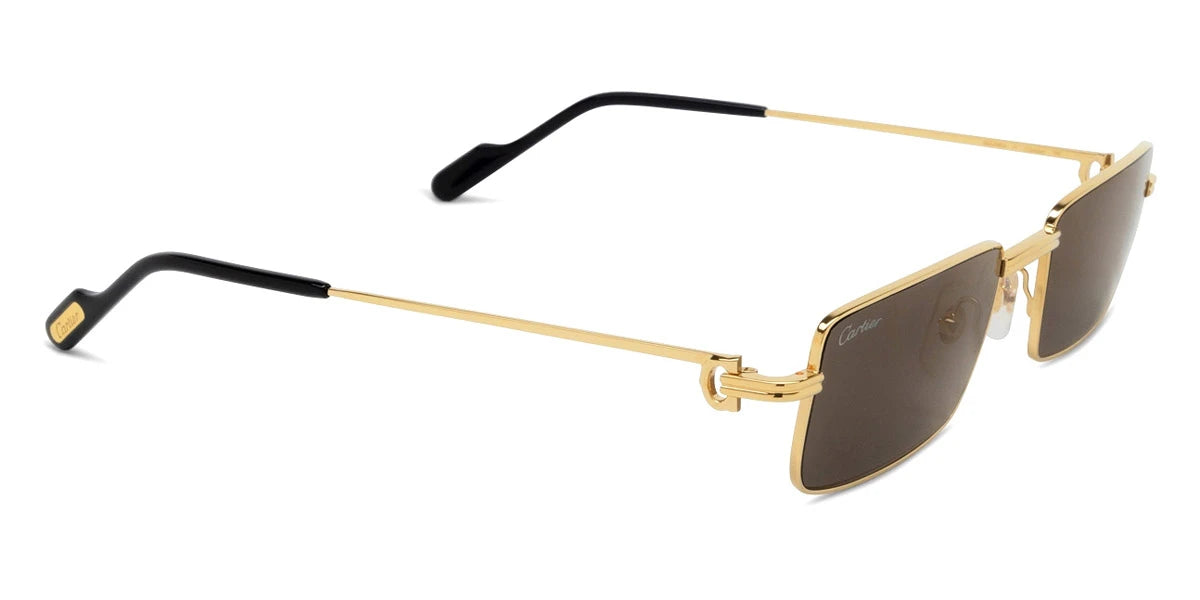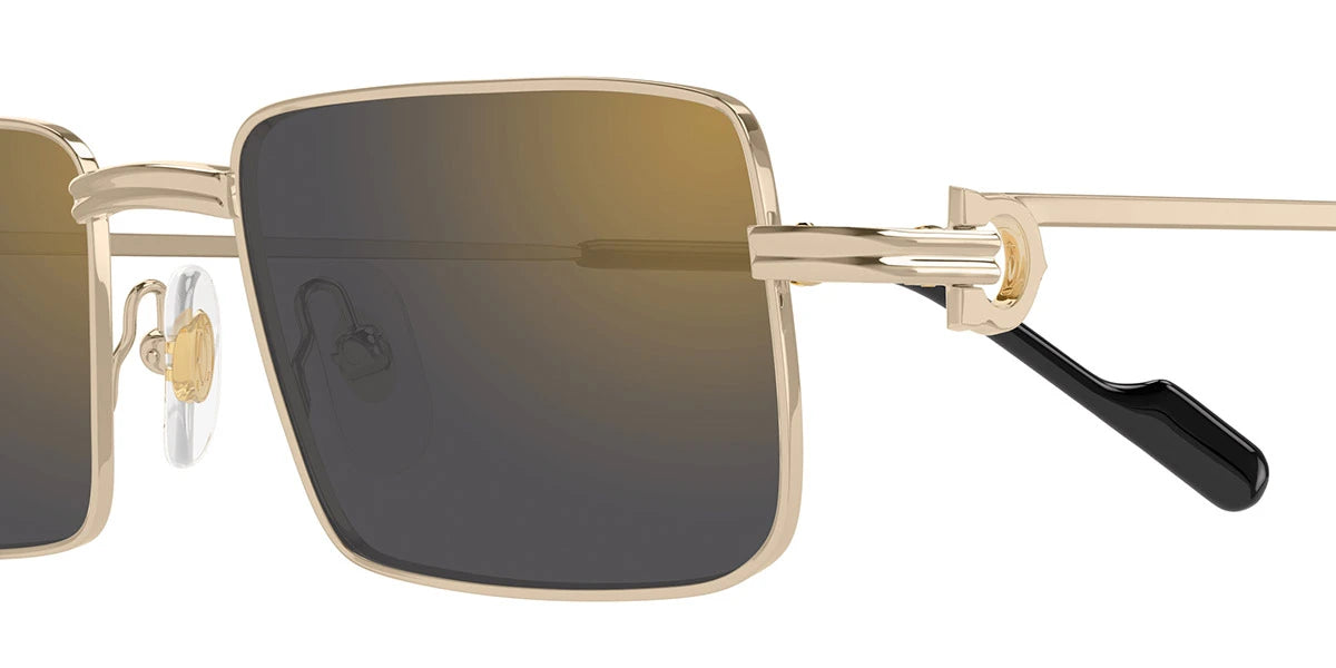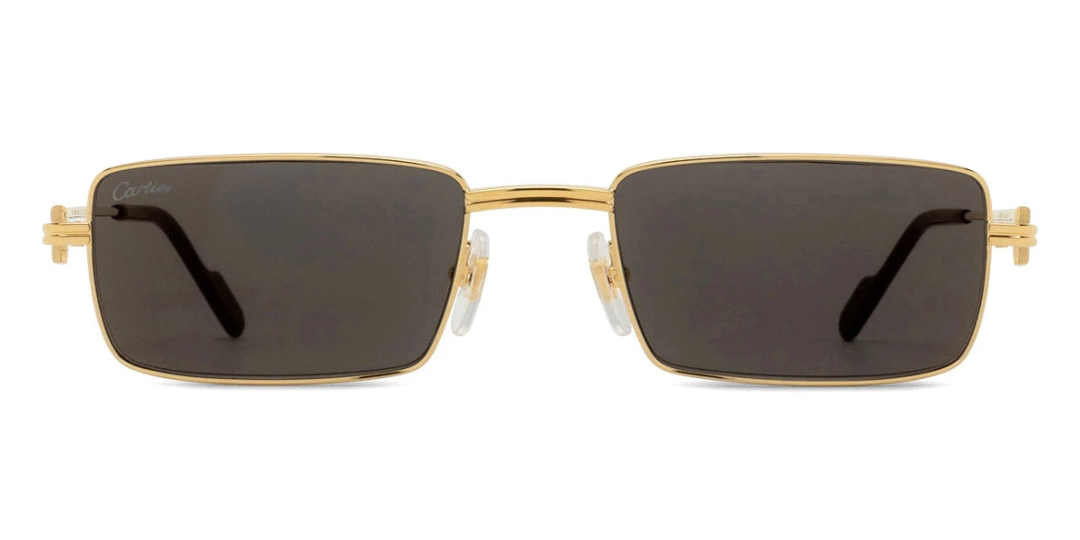 Gold (005) Sunglasses with Gray Multi Treatment lenses (CT0501S 005 54) by Cartier™. Size: 54-20-145, Shape: Rectangle, Material: Metal and Recycled Acetate.