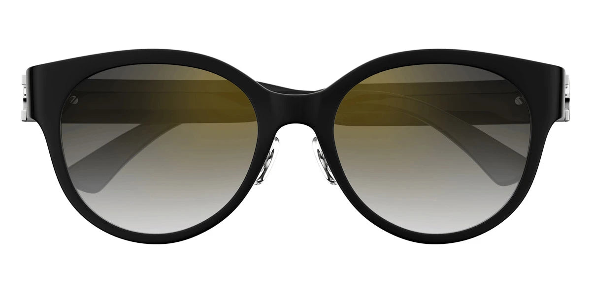 Black (001) Sunglasses with Gray Multi Treatment lenses (CT0510SJ 001 55) by Cartier™. Size: 55-19-145, Shape: Cat-Eye, Material: Metal and Recycled Acetate.