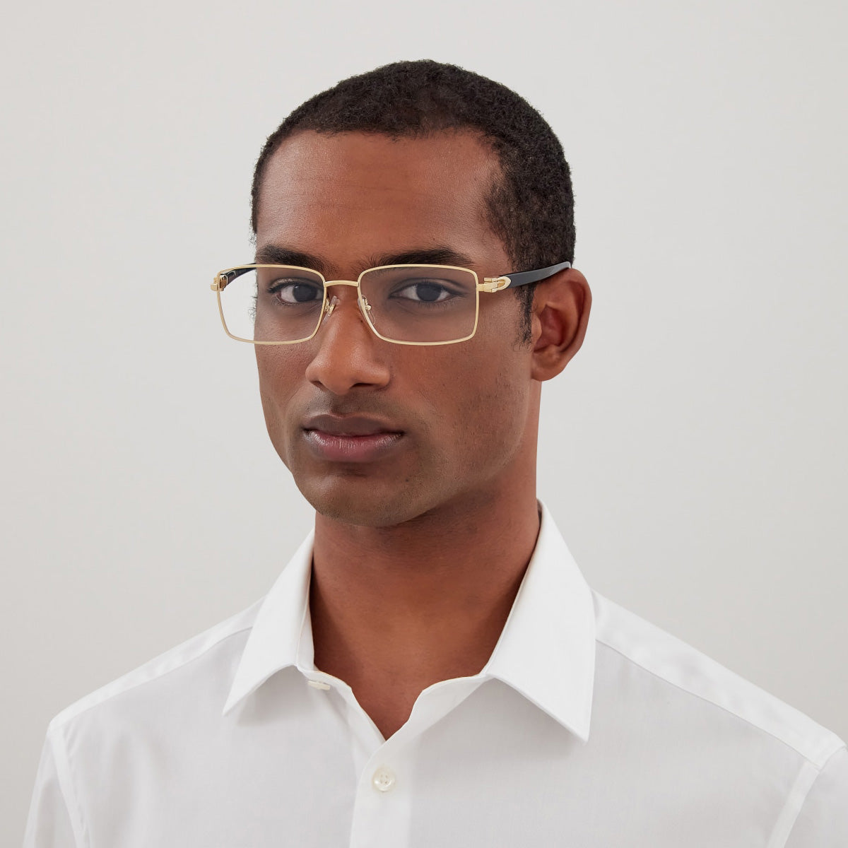 The rectangle shape design feature a full rim metal recycled acetate frame. This model is available in three different color combinations and sizes. Cartier, a renowned luxury brand with a rich history spanning over a century, is synonymous with elegance, craftsmanship, and timeless style. While Cartier is most celebrated for its exquisite jewelry and watches, the brand's eyewear collection stands as a testament to its commitment to excellence and innovation. Its eyewear captures the essence of Cartier's aesthetic codes, combining traditional craftsmanship with modern designs to create eyewear pieces that are both stylish and functional. Each pair of eyeglasses is meticulously crafted using the finest materials and techniques, resulting in a high-quality product that is built to last. One of the defining features of Cartier eyewear is its iconic and recognizable designs. The brand often incorporates signature elements like the panther motif, the Double C logo, and the Cartier screws, which add a touch of sophistication and luxury to the frames. These distinctive details are a testament to the brand's dedication to creating eyewear that is not only fashionable but also instantly recognizable as a Cartier creation.