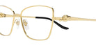 Gold (001) Eyeglasses with Transparent AR lenses (CT0523O 001 55) by Cartier™. Size: 55-15-135, Shape: Cat-Eye, Material: Metal and Injection.