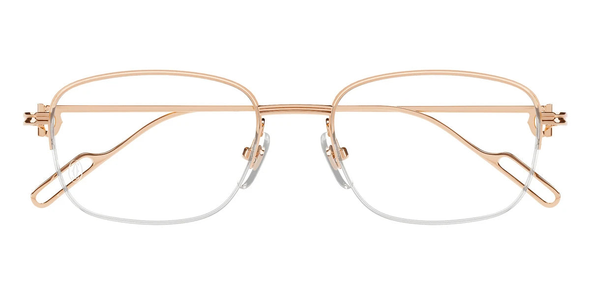 Copper (001) Eyeglasses with Transparent AR lenses (CT0529OA 001 54) by Cartier™. Size: 54-18-145, Shape: Rectangle, Material: Gold.