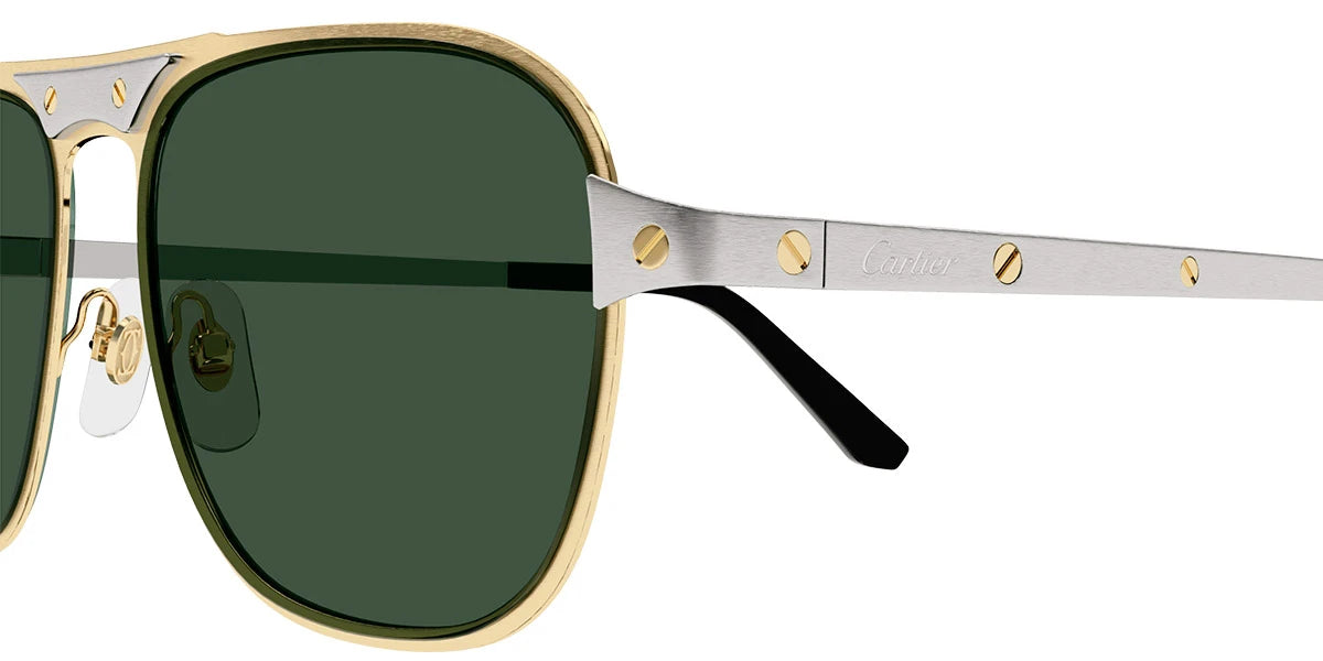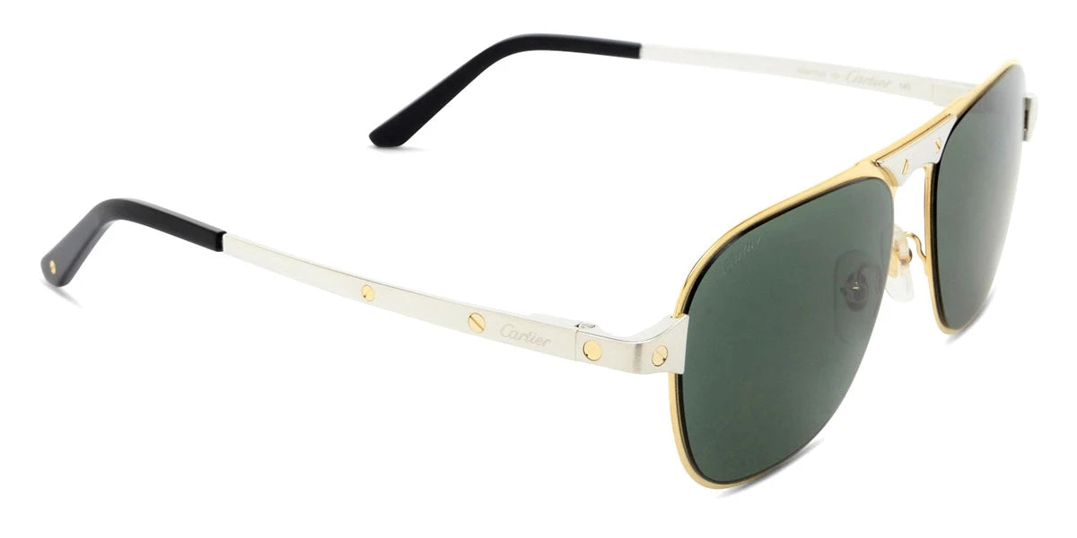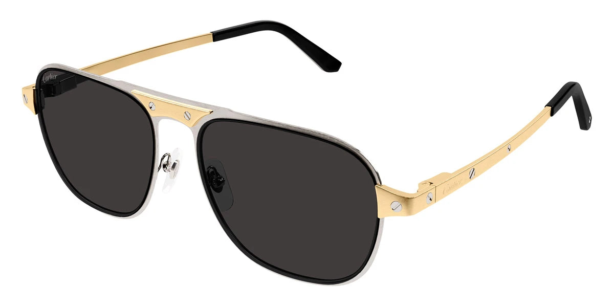 Silver/Gold (001) Sunglasses with Gray Multi Treatment lenses (CT0532S 001 58) by Cartier™. Size: 58-17-145, Shape: Aviator, Material: Metal.