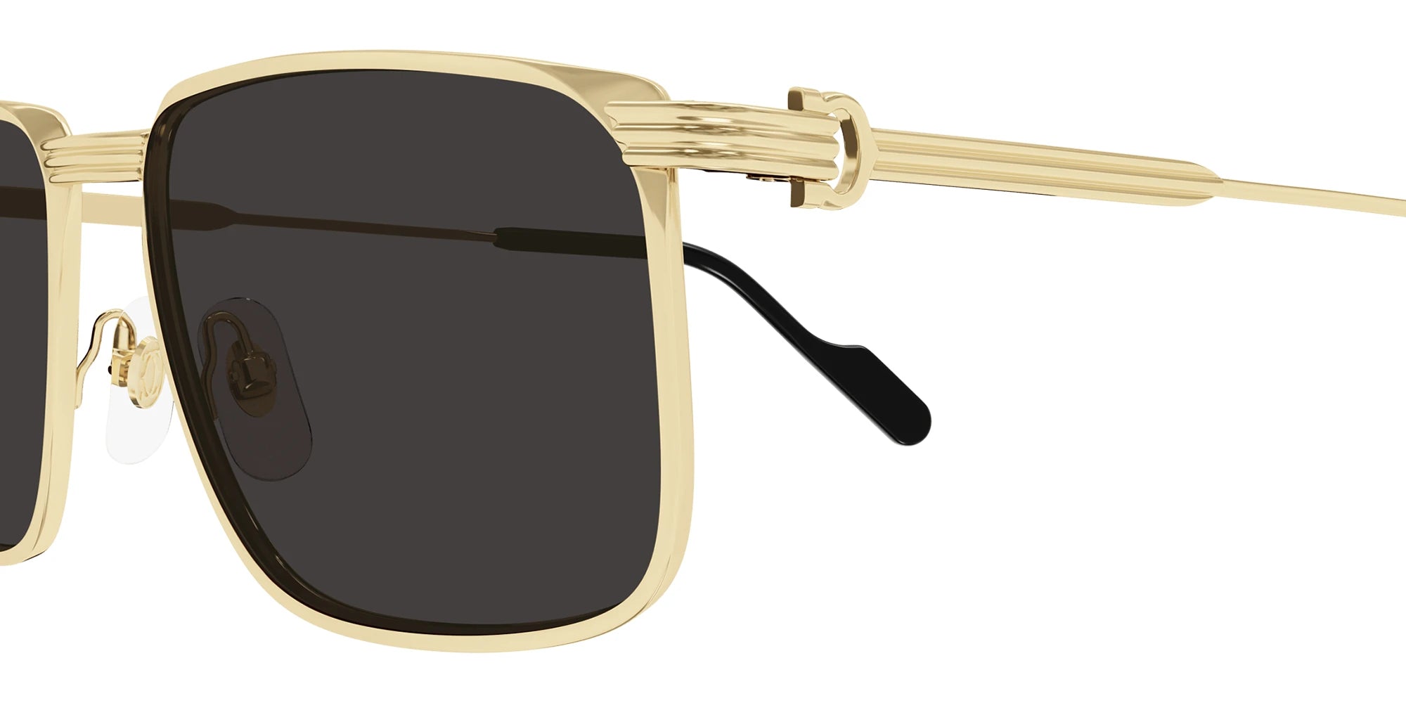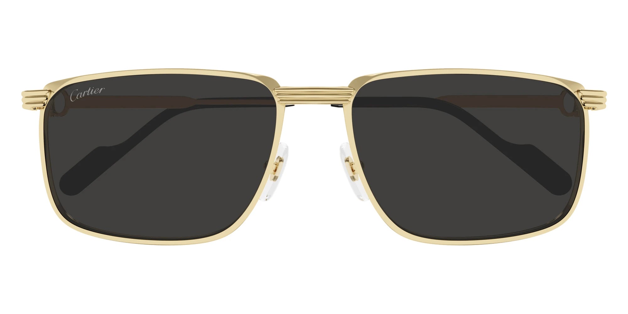 Gold (001) Sunglasses with Gray AR lenses (CT0534S 001 59) by Cartier™. Size: 59-17-145, Shape: Rectangle, Material: Recycled Acetate and Metal.