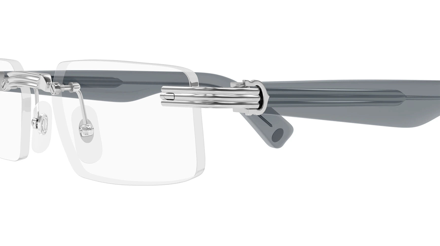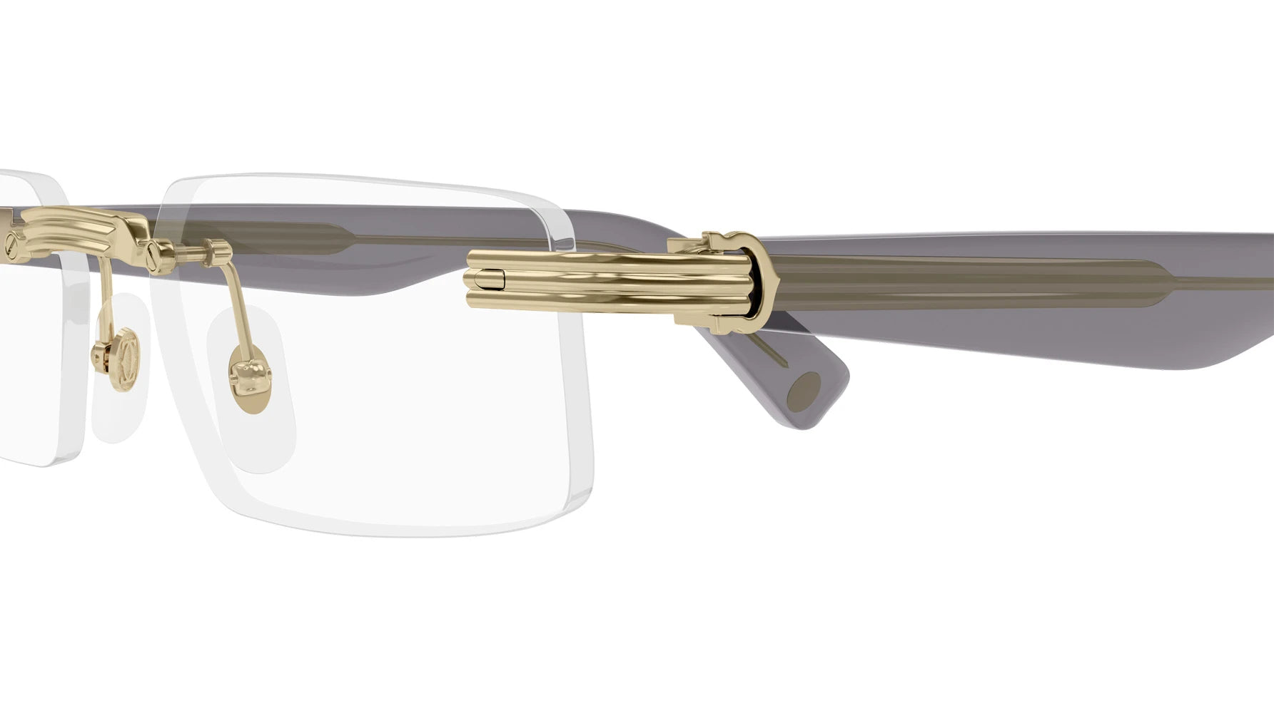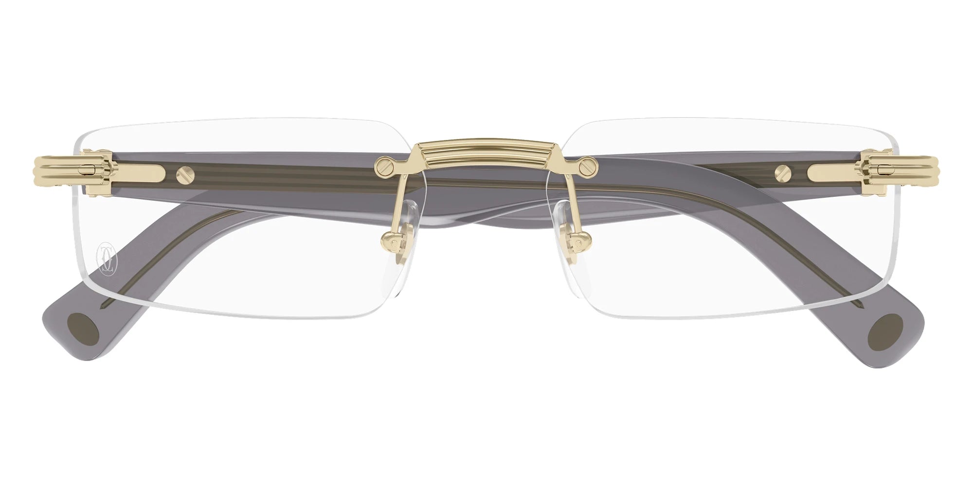 CT0537O Eyeglasses by Cartier™. The rectangle shape design feature a rimless metal and recycled acetate frame. This model is available in three different color combinations and sizes. Cartier, a renowned luxury brand with a rich history spanning over a century, is synonymous with elegance, craftsmanship, and timeless style. While Cartier is most celebrated for its exquisite jewelry and watches, the brand's eyewear collection stands as a testament to its commitment to excellence and innovation. Its eyewear captures the essence of Cartier's aesthetic codes, combining traditional craftsmanship with modern designs to create eyewear pieces that are both stylish and functional. Each pair of eyeglasses is meticulously crafted using the finest materials and techniques, resulting in a high-quality product that is built to last. One of the defining features of Cartier eyewear is its iconic and recognizable designs. The brand often incorporates signature elements like the panther motif, the Double C logo, and the Cartier screws, which add a touch of sophistication and luxury to the frames. These distinctive details are a testament to the brand's dedication to creating eyewear that is not only fashionable but also instantly recognizable as a Cartier creation.