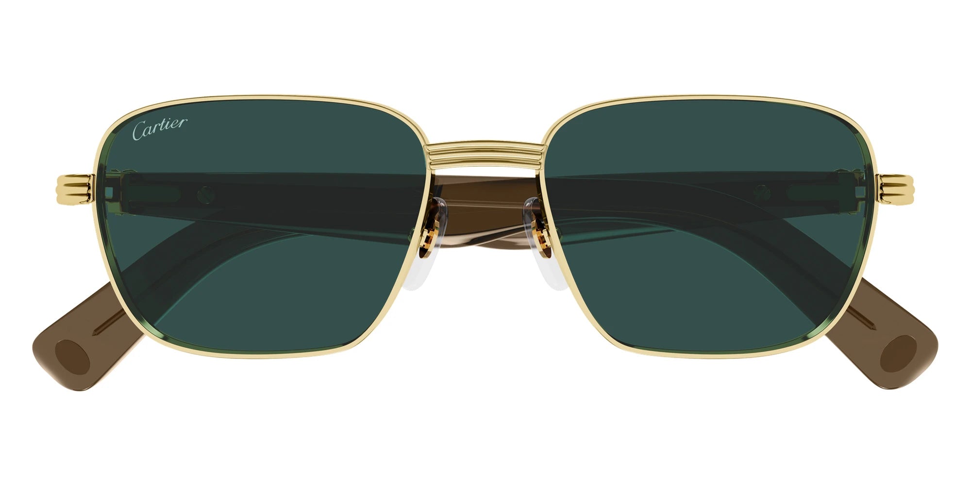 CT0538S Sunglasses by Cartier™. The square shape design feature a full rim metal and recycled acetate frame. This model is available in three different color combinations and sizes. Cartier, a renowned luxury brand with a rich history spanning over a century, is synonymous with elegance, craftsmanship, and timeless style. While Cartier is most celebrated for its exquisite jewelry and watches, the brand's eyewear collection stands as a testament to its commitment to excellence and innovation. Its eyewear captures the essence of Cartier's aesthetic codes, combining traditional craftsmanship with modern designs to create eyewear pieces that are both stylish and functional. Each pair of sunglasses is meticulously crafted using the finest materials and techniques, resulting in a high-quality product that is built to last. One of the defining features of Cartier eyewear is its iconic and recognizable designs. The brand often incorporates signature elements like the panther motif, the Double C logo, and the Cartier screws, which add a touch of sophistication and luxury to the frames. These distinctive details are a testament to the brand's dedication to creating eyewear that is not only fashionable but also instantly recognizable as a Cartier creation.