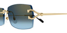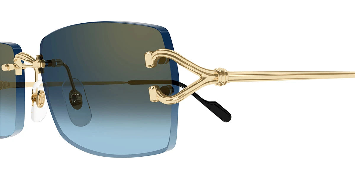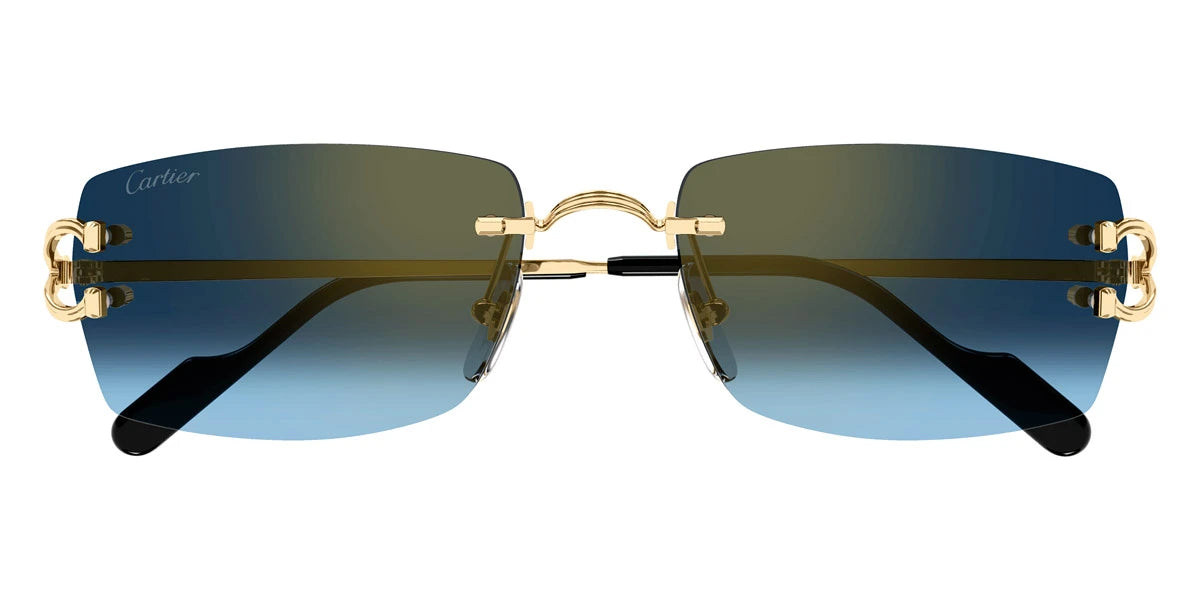 Gold (002) Sunglasses with Blue Multi Treatment lenses (CT0550S 002 56) by Cartier™. Size: 56-18-140, Shape: Rectangle, Material: Metal.