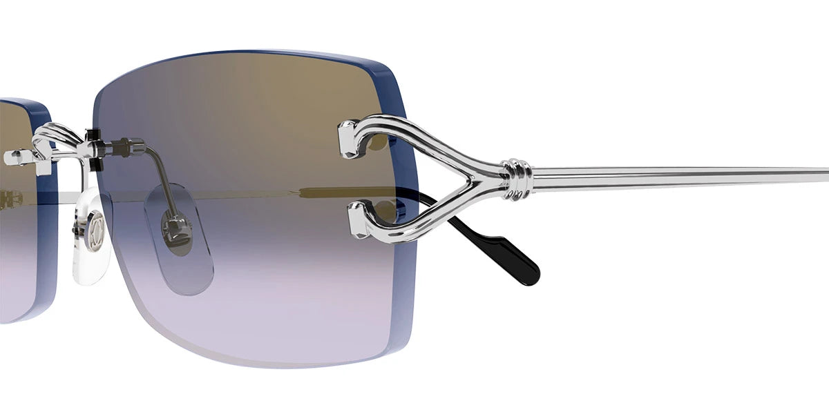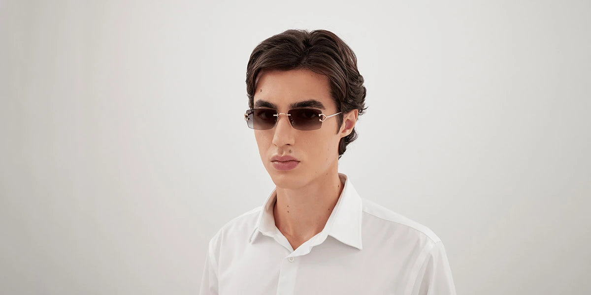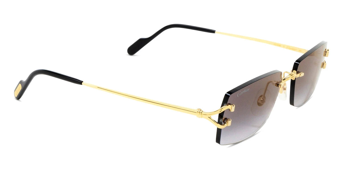 CT0550S Sunglasses by Cartier™. The rectangle shape design feature a rimless metal frame. This model is available in three different color combinations and sizes. Cartier, a renowned luxury brand with a rich history spanning over a century, is synonymous with elegance, craftsmanship, and timeless style. While Cartier is most celebrated for its exquisite jewelry and watches, the brand's eyewear collection stands as a testament to its commitment to excellence and innovation. Its eyewear captures the essence of Cartier's aesthetic codes, combining traditional craftsmanship with modern designs to create eyewear pieces that are both stylish and functional. Each pair of sunglasses is meticulously crafted using the finest materials and techniques, resulting in a high-quality product that is built to last. One of the defining features of Cartier eyewear is its iconic and recognizable designs. The brand often incorporates signature elements like the panther motif, the Double C logo, and the Cartier screws, which add a touch of sophistication and luxury to the frames. These distinctive details are a testament to the brand's dedication to creating eyewear that is not only fashionable but also instantly recognizable as a Cartier creation.