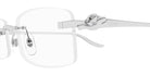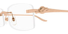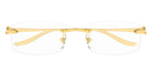 CT0552O Eyeglasses by Cartier™. The rectangle shape design feature a rimless gold frame. This model is available in three different color combinations and sizes. Cartier, a renowned luxury brand with a rich history spanning over a century, is synonymous with elegance, craftsmanship, and timeless style. While Cartier is most celebrated for its exquisite jewelry and watches, the brand's eyewear collection stands as a testament to its commitment to excellence and innovation. Its eyewear captures the essence of Cartier's aesthetic codes, combining traditional craftsmanship with modern designs to create eyewear pieces that are both stylish and functional. Each pair of eyeglasses is meticulously crafted using the finest materials and techniques, resulting in a high-quality product that is built to last. One of the defining features of Cartier eyewear is its iconic and recognizable designs. The brand often incorporates signature elements like the panther motif, the Double C logo, and the Cartier screws, which add a touch of sophistication and luxury to the frames. These distinctive details are a testament to the brand's dedication to creating eyewear that is not only fashionable but also instantly recognizable as a Cartier creation.