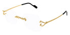 CT0564O Eyeglasses by Cartier™. The cat-eye shape design feature a rimless metal frame. This model is available in two different color combinations and sizes. Cartier, a renowned luxury brand with a rich history spanning over a century, is synonymous with elegance, craftsmanship, and timeless style. While Cartier is most celebrated for its exquisite jewelry and watches, the brand's eyewear collection stands as a testament to its commitment to excellence and innovation. Its eyewear captures the essence of Cartier's aesthetic codes, combining traditional craftsmanship with modern designs to create eyewear pieces that are both stylish and functional. Each pair of eyeglasses is meticulously crafted using the finest materials and techniques, resulting in a high-quality product that is built to last. One of the defining features of Cartier eyewear is its iconic and recognizable designs. The brand often incorporates signature elements like the panther motif, the Double C logo, and the Cartier screws, which add a touch of sophistication and luxury to the frames. These distinctive details are a testament to the brand's dedication to creating eyewear that is not only fashionable but also instantly recognizable as a Cartier creation.