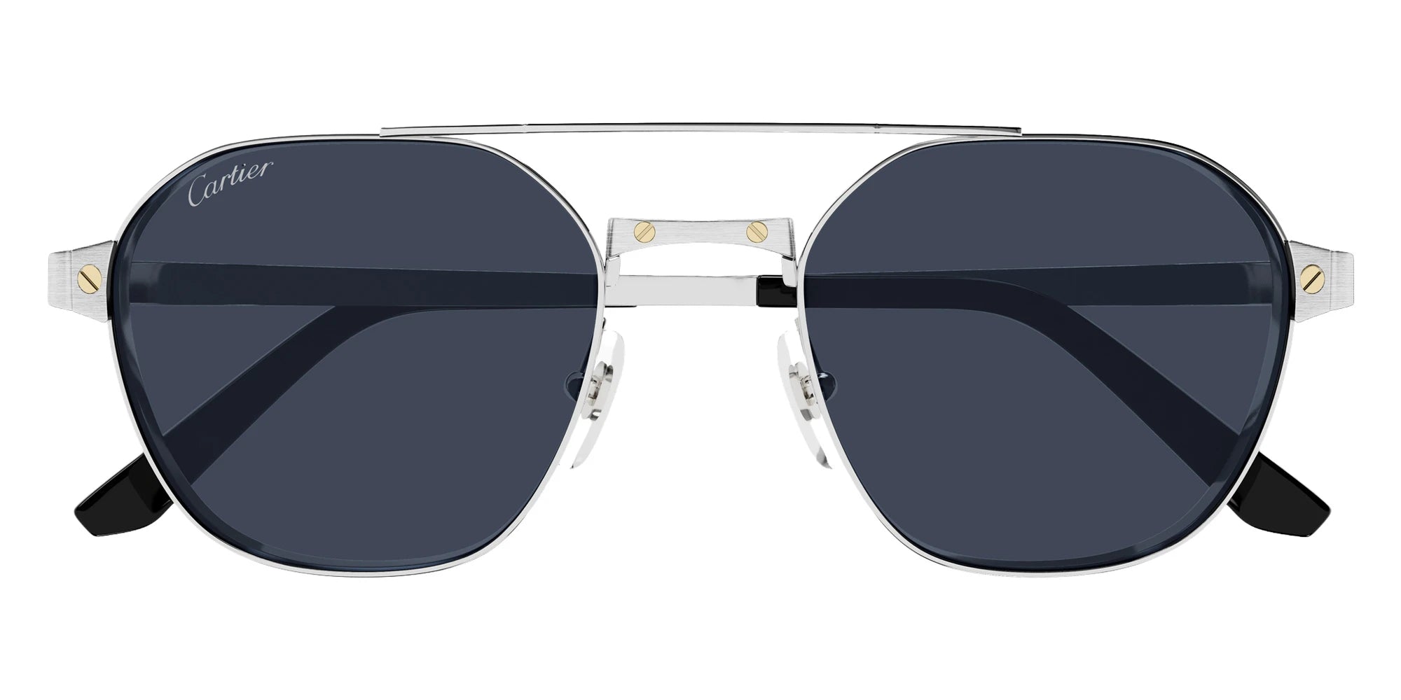 CT0571S Sunglasses by Cartier™. The square shape design feature a full rim metal and recycled acetate frame. This model is available in three different color combinations and sizes. Cartier, a renowned luxury brand with a rich history spanning over a century, is synonymous with elegance, craftsmanship, and timeless style. While Cartier is most celebrated for its exquisite jewelry and watches, the brand's eyewear collection stands as a testament to its commitment to excellence and innovation. Its eyewear captures the essence of Cartier's aesthetic codes, combining traditional craftsmanship with modern designs to create eyewear pieces that are both stylish and functional. Each pair of sunglasses is meticulously crafted using the finest materials and techniques, resulting in a high-quality product that is built to last. One of the defining features of Cartier eyewear is its iconic and recognizable designs. The brand often incorporates signature elements like the panther motif, the Double C logo, and the Cartier screws, which add a touch of sophistication and luxury to the frames. These distinctive details are a testament to the brand's dedication to creating eyewear that is not only fashionable but also instantly recognizable as a Cartier creation.