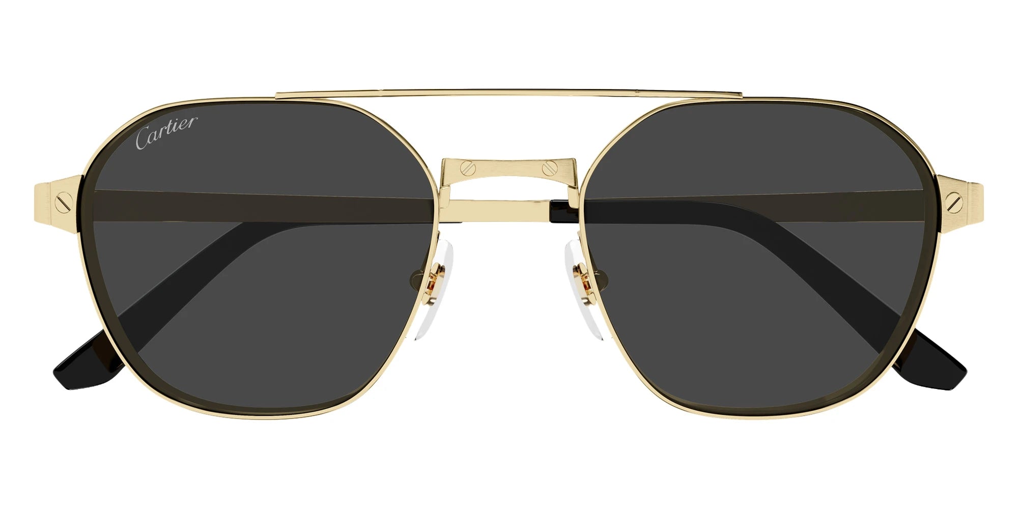 Gold (001) Sunglasses with Smoke Polarized Ar lenses (CT0571S 001 52) by Cartier™. Size: 52-20-145, Shape: Square, Material: Metal and Recycled Acetate.