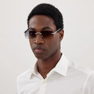 CT0579S Sunglasses by Cartier™. The rectangle shape design feature a rimless metal and recycled acetate frame. This model is available in three different color combinations and sizes. Cartier, a renowned luxury brand with a rich history spanning over a century, is synonymous with elegance, craftsmanship, and timeless style. While Cartier is most celebrated for its exquisite jewelry and watches, the brand's eyewear collection stands as a testament to its commitment to excellence and innovation. Its eyewear captures the essence of Cartier's aesthetic codes, combining traditional craftsmanship with modern designs to create eyewear pieces that are both stylish and functional. Each pair of sunglasses is meticulously crafted using the finest materials and techniques, resulting in a high-quality product that is built to last. One of the defining features of Cartier eyewear is its iconic and recognizable designs. The brand often incorporates signature elements like the panther motif, the Double C logo, and the Cartier screws, which add a touch of sophistication and luxury to the frames. These distinctive details are a testament to the brand's dedication to creating eyewear that is not only fashionable but also instantly recognizable as a Cartier creation.