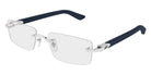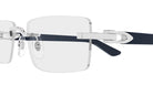 Silver/Blue (008) Eyeglasses (CT0581O 008 58) by Cartier™. Size: 58-18-145, Shape: Rectangle, Material: Metal and Recycled Acetate.