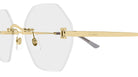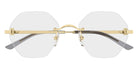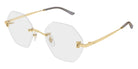 CT0593O Eyeglasses by Cartier™. The geometric shape design feature a rimless recycled acetate and metal frame. This model is available in two different color combinations and sizes. Cartier, a renowned luxury brand with a rich history spanning over a century, is synonymous with elegance, craftsmanship, and timeless style. While Cartier is most celebrated for its exquisite jewelry and watches, the brand's eyewear collection stands as a testament to its commitment to excellence and innovation. Its eyewear captures the essence of Cartier's aesthetic codes, combining traditional craftsmanship with modern designs to create eyewear pieces that are both stylish and functional. Each pair of eyeglasses is meticulously crafted using the finest materials and techniques, resulting in a high-quality product that is built to last. One of the defining features of Cartier eyewear is its iconic and recognizable designs. The brand often incorporates signature elements like the panther motif, the Double C logo, and the Cartier screws, which add a touch of sophistication and luxury to the frames. These distinctive details are a testament to the brand's dedication to creating eyewear that is not only fashionable but also instantly recognizable as a Cartier creation.