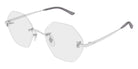 Silver (002) Eyeglasses (CT0593O 002 53) by Cartier™. Size: 53-19-140, Shape: Geometric, Material: Recycled Acetate and Metal.
