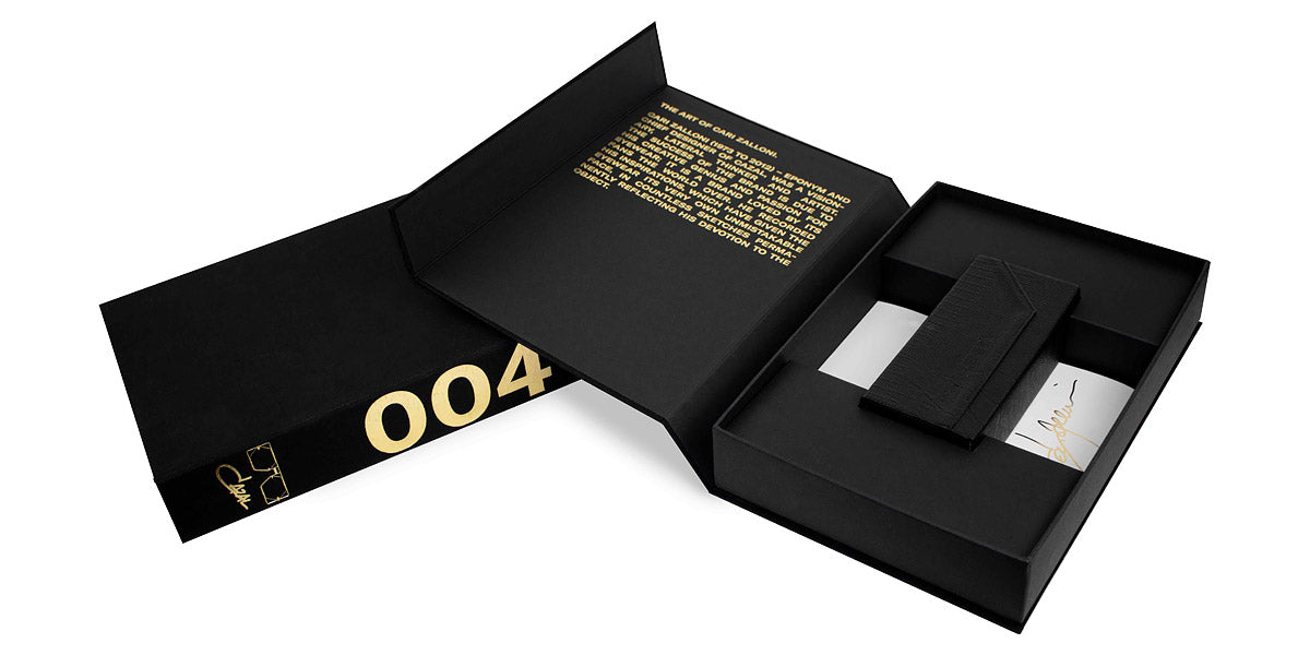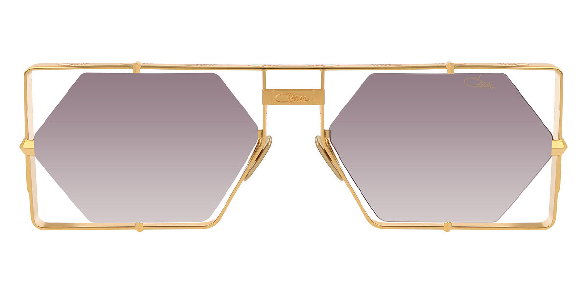 004 Sunglasses by Cazal™. The irregular shape design feature a full rim acetate and metal frame. This model is available in two different color combinations and sizes. The limited 004 follows a drawing from 1991 by Cari Zalloni. The extraordinary metal face is enhanced by an exclusive logo decoration and frames the striking lens shapes. An elaborate metal logo adorns the distinctive acetate temple. 24 Karat goldplated with engraved nose pads of gold-plated titanium, the „004“ is a masterpiece of design, quality and craftsmanship. From the glasses to the packaging, every element embodies the unmistakable and unique cazal style.