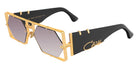 Black-Gold (001) Sunglasses with Gray Gradient AR lenses (004 001 58) by Cazal™. Size: 58-18-145, Shape: Irregular, Material: Acetate and Metal.