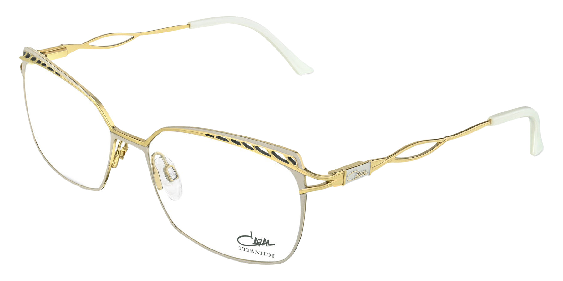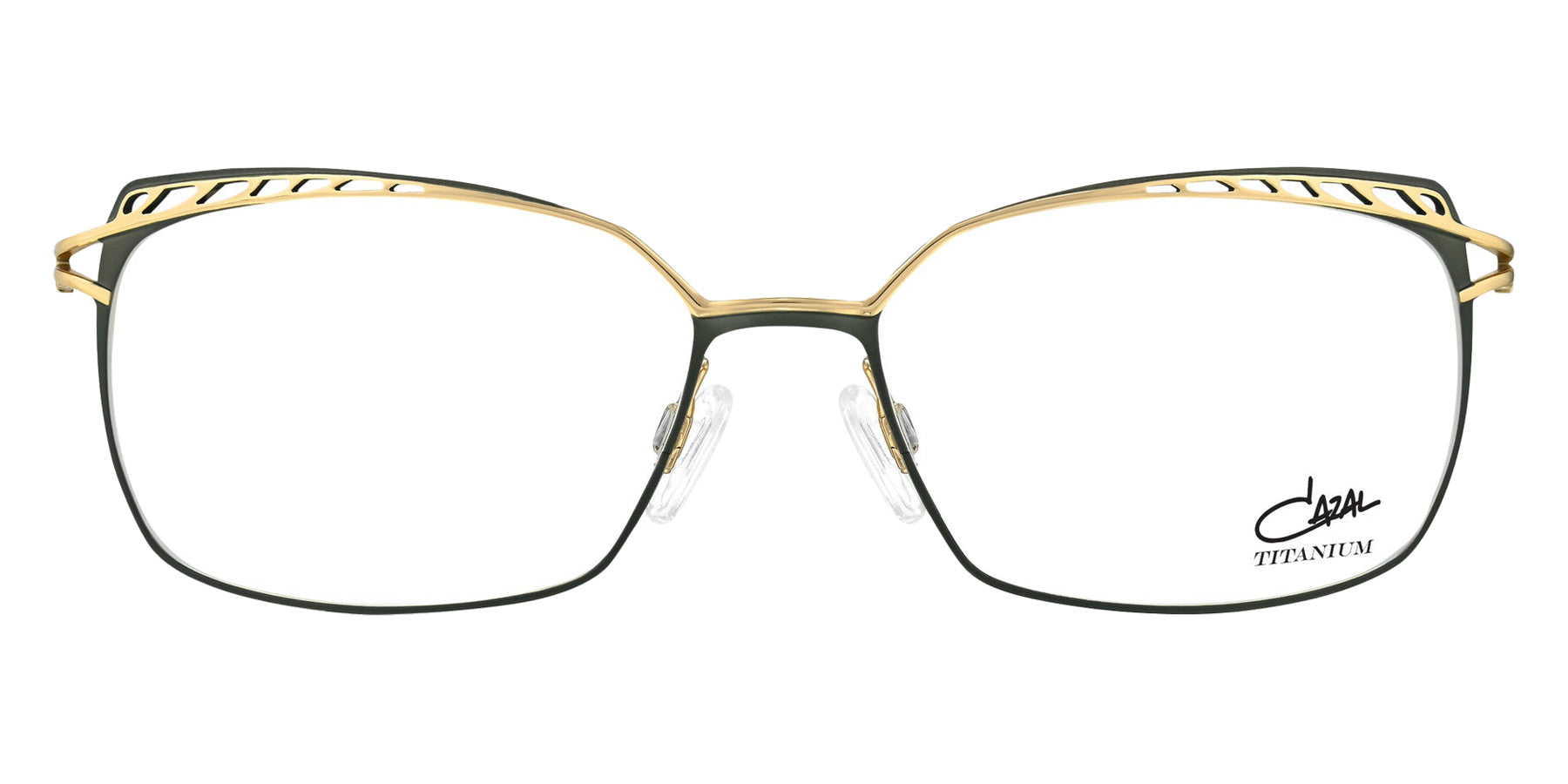 Khaki-Gold (001) Eyeglasses (1293 001 55) by Cazal™. Size: 55-16-135, Shape: Cat-Eye, Material: Titanium.