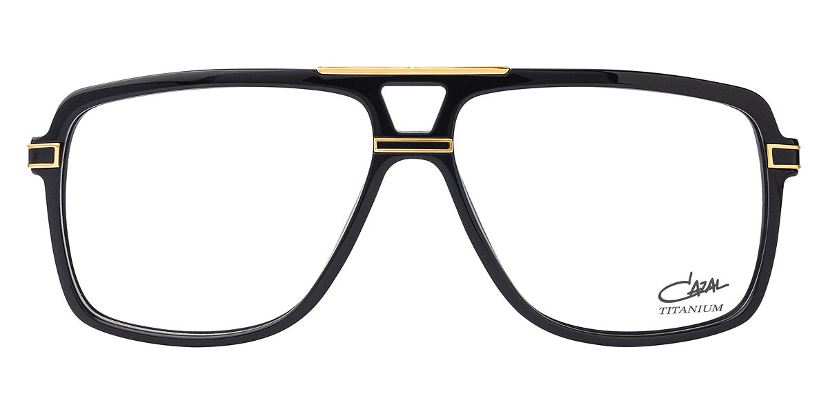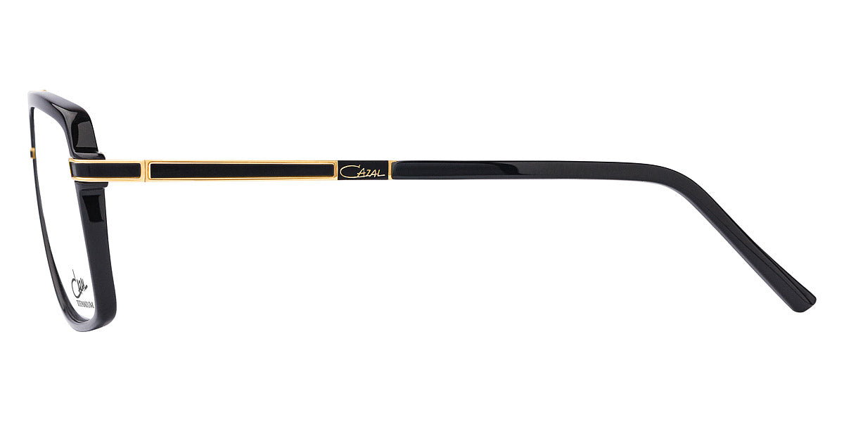 Black-Gold (001) Eyeglasses (6018 001 58) by Cazal™. Size: 58-12-145, Shape: Square, Material: Acetate.