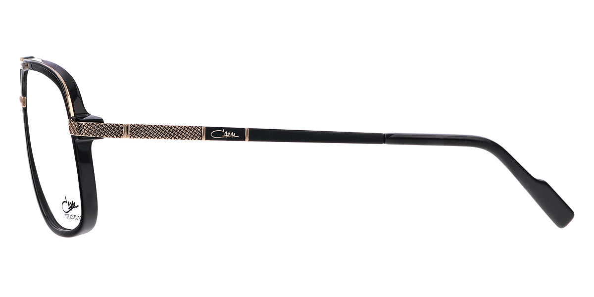 Black-Gold (001) Eyeglasses (6027 001 60) by Cazal™. Size: 60-14-140, Shape: Oversized, Material: Acetate and Metal.