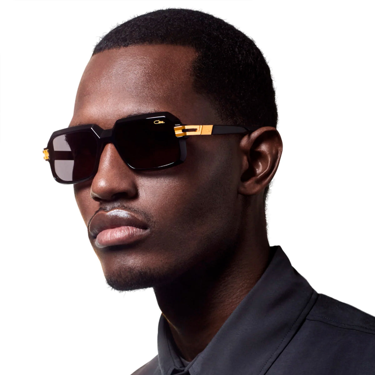 Black-Gold (001) Sunglasses with Gray AR lenses (6037/3 001 56) by Cazal™. Size: 56-17-145, Shape: Square, Material: Acetate and Metal.