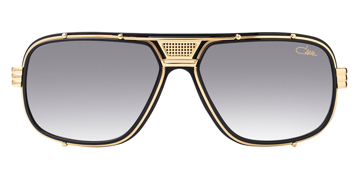 Black-Gold (001) Sunglasses with Gray Gradient lenses (665 001 60) by Cazal™. Size: 60-15-140, Shape: Aviator, Material: Acetate and Metal.