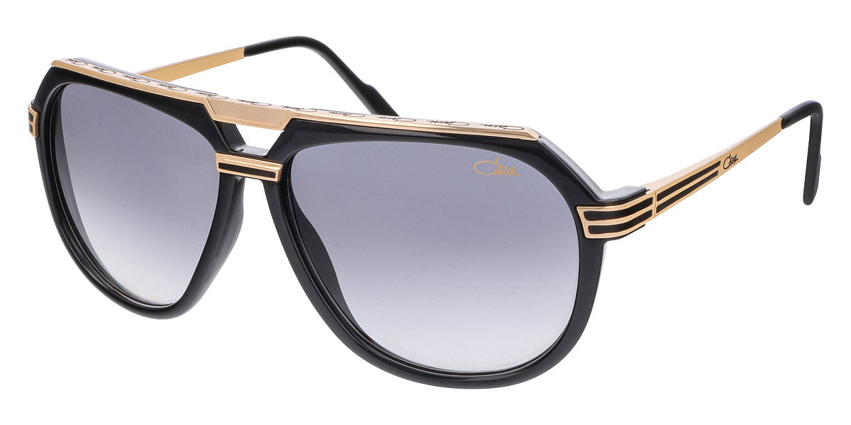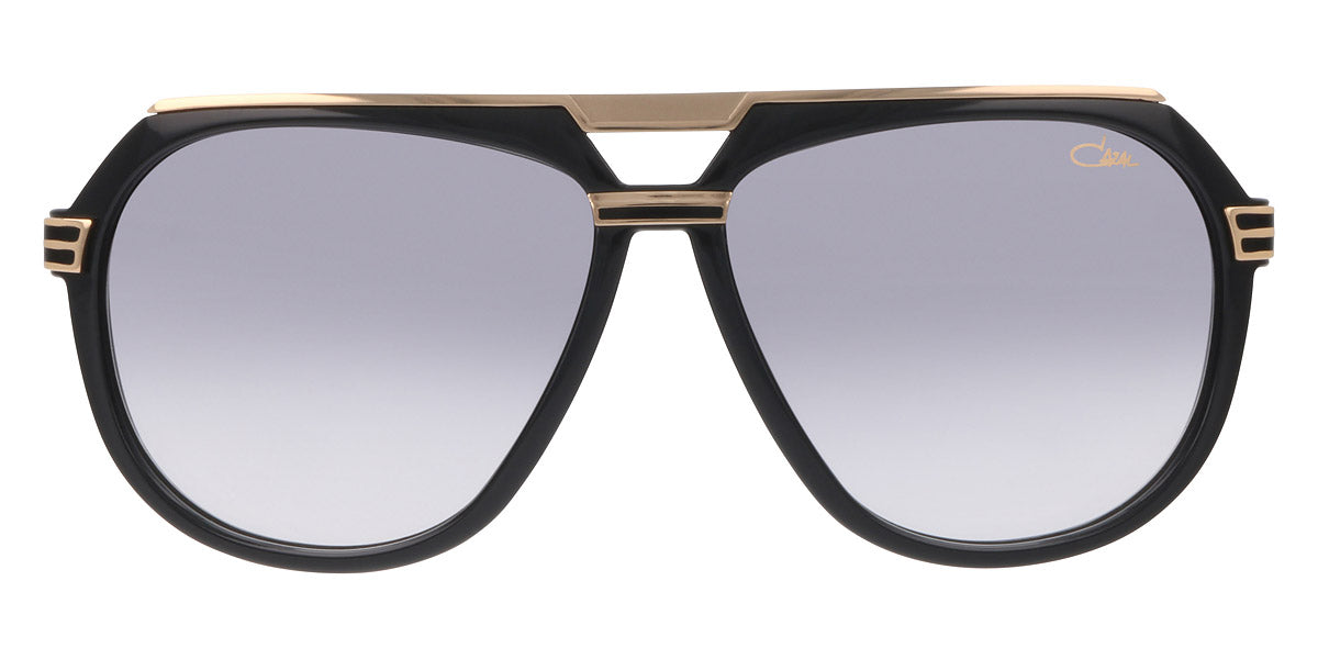 Black-Gold (001) Sunglasses with Gray Gradient lenses (674 001 60) by Cazal™. Size: 60-13-140, Shape: Aviator, Material: Acetate and Metal.