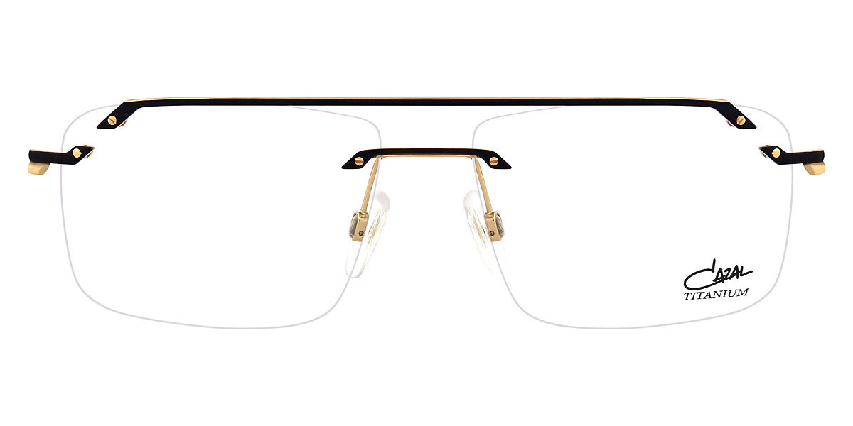Black-Gold (001) Eyeglasses (7100 001 57) by Cazal™. Size: 57-16-142, Shape: Rectangle, Material: Metal.