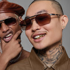 The aviator shape design feature a full rim titanium frame. This model is available in two different color combinations and sizes. Cazal, a distinguished high-end eyewear brand, has carved its niche with its unparalleled designs and exquisite craftsmanship. Each pair of Cazal glasses exemplifies the brand's dedication to luxury and sophistication, transcending mere eyewear into wearable works of art. With a diverse range of styles and designs, Cazal caters to individual preferences, offering both bold and standout frames as well as subtle and understated options. Endorsed by celebrities and fashion icons, Cazal glasses have garnered admiration for their meticulous attention to detail and uncompromising quality, making them a worthwhile investment for those seeking to make a distinctive statement with their eyewear.