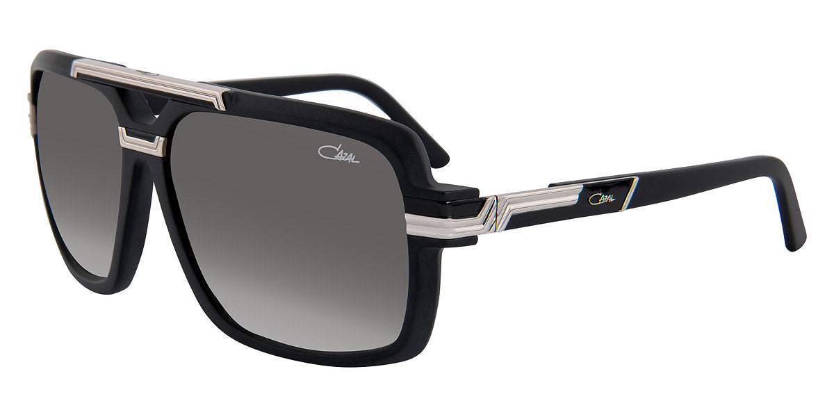 Black-Silver Matte (002) Sunglasses with Green Gradient lenses (8042 002 61) by Cazal™. Size: 61-14-142, Shape: Square, Material: Acetate.
