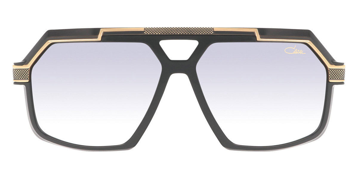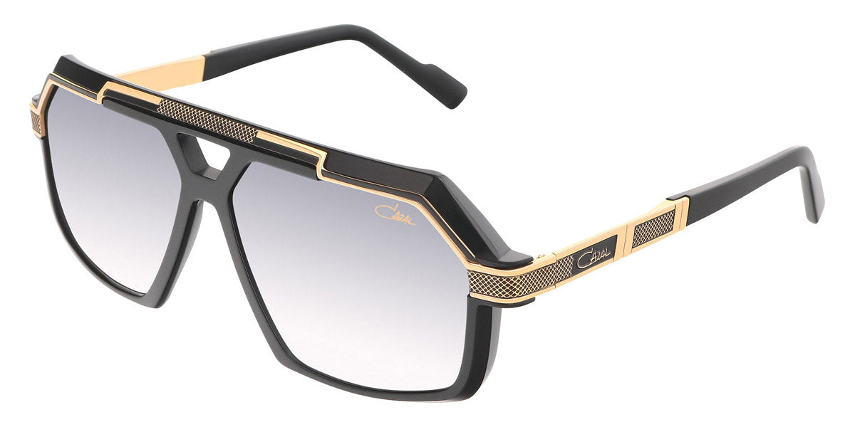 Black-Gold (001) Sunglasses with Gray Gradient AR lenses (8048 001 59) by Cazal™. Size: 59-13-140, Shape: Aviator, Material: Plastic.