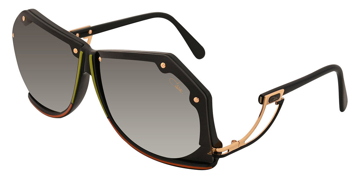 Black-Orange (001) Sunglasses with Gray Gradient lenses (860 001 66) by Cazal™. Size: 66-8-125, Shape: Irregular, Material: Acetate.