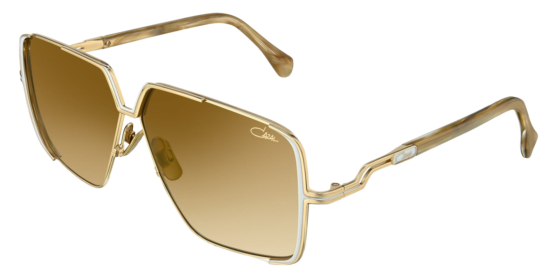 Milky White-Gold (003) Sunglasses with Brown Gradient AR lenses (9508 003 59) by Cazal™. Size: 59-9-140, Shape: Aviator, Material: Stainless steel.