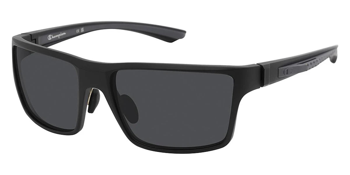Matte Black (c01) Sunglasses with Dark Gray Polarized lenses (CFITS03 c01 59) by Champion™. Size: 59-18-130, Shape: Wrap, Material: Acetate.