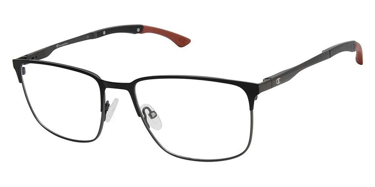 Matte Black/Gunmetal (c01) Eyeglasses (CHASEX c01 59) by Champion™. Size: 59-19-145, Shape: Square, Material: Titanium.