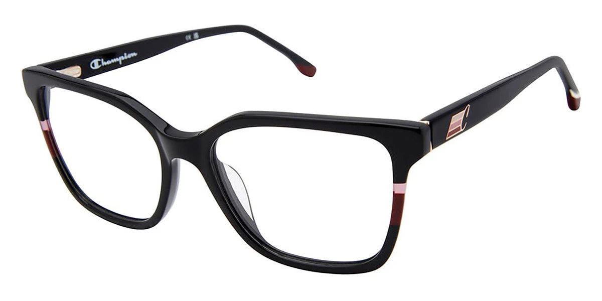 Black (c01) Eyeglasses (LANEY c01 53) by Champion™. Size: 53-16-138, Shape: Wayfarer, Material: Acetate.