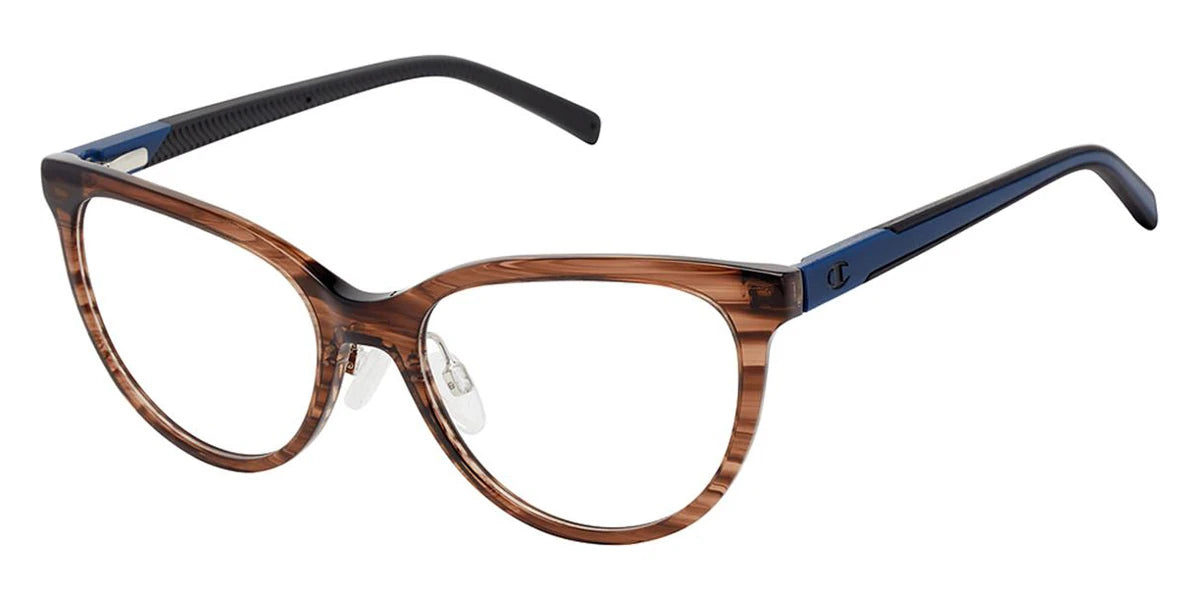 Brown Horn (c01) Eyeglasses (WCFIT 201 c01 52) by Champion™. Size: 52-17-135, Shape: Cat-Eye, Material: Acetate.