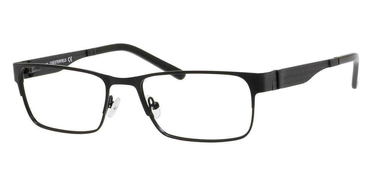 Matte Black (0003) Eyeglasses (CH 21 XL 0003 56) by Chesterfield™. Size: 56-18-145, Shape: Rectangle, Material: Metal.