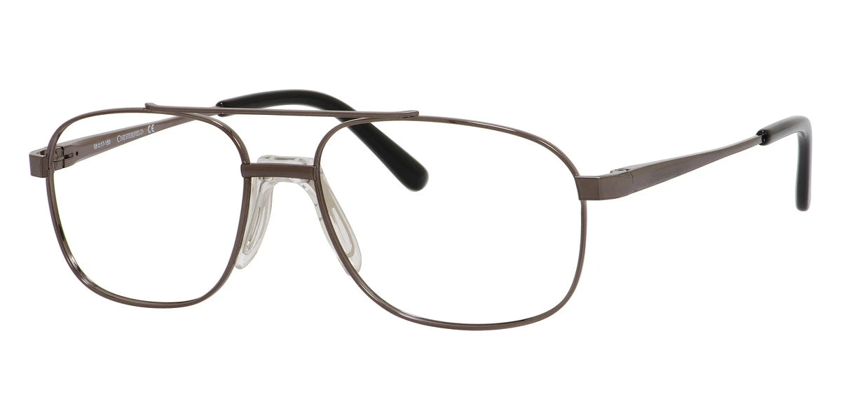 CH 868/T Eyeglasses by Chesterfield™. Shape: Aviator, Material: Titanium, Frame Type: Full Rim. This model is available in four different color combinations and sizes. Success is in the details. That's why it's so critical to choose the right accessories whether you're at an important meeting or having lunch with your friend. Men who are serious about their look and style choose Chesterfield eyeglasses that feature sleek and masculine design without bringing too much attention.